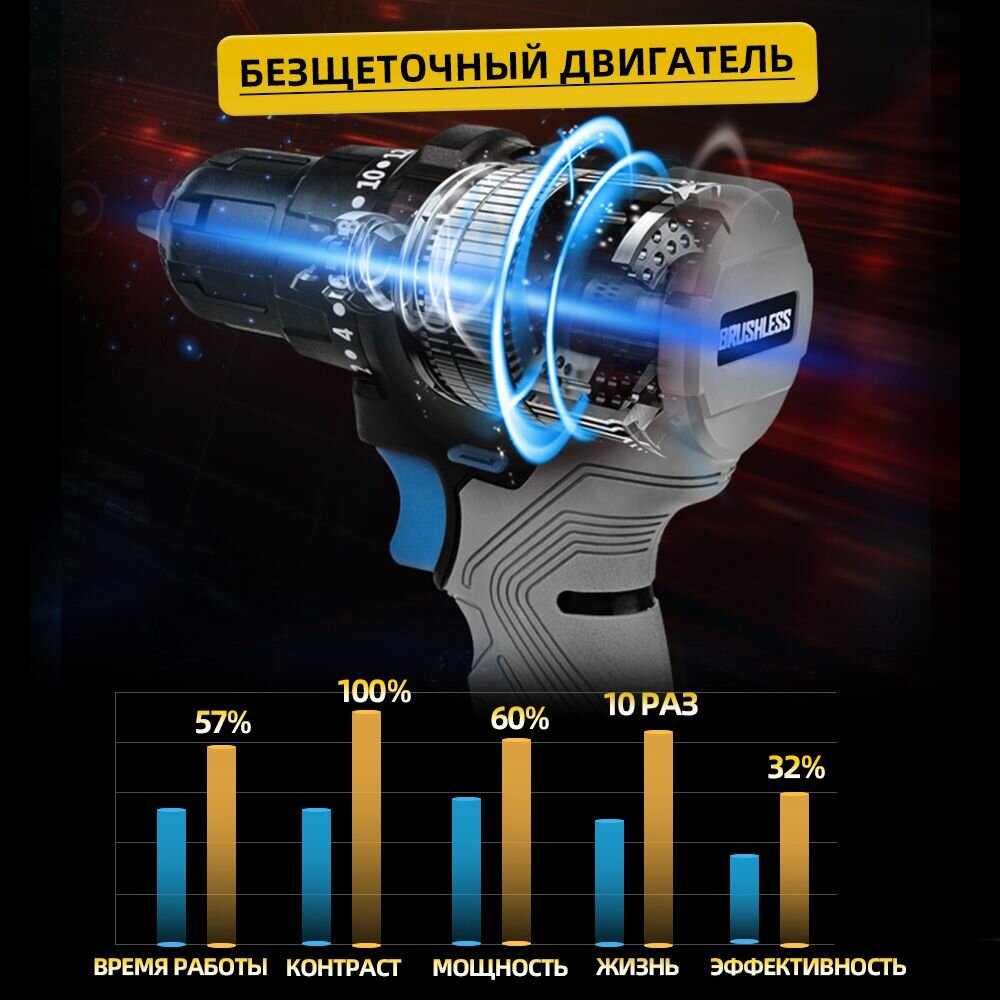 Аккумуляторная бесщеточная дрель-шуруповерт PROSTORMER,17B,2х 1.5А·ч Li-Ion,55 нм, в коробке, PSBD00202A