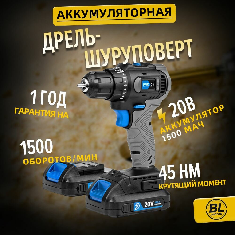 Купить Аккумуляторная бесщеточная дрель-шуруповерт PROSTORMER,20B,2х 1.5А·ч Li-Ion, 45 нм, в коробке, PTET104102E