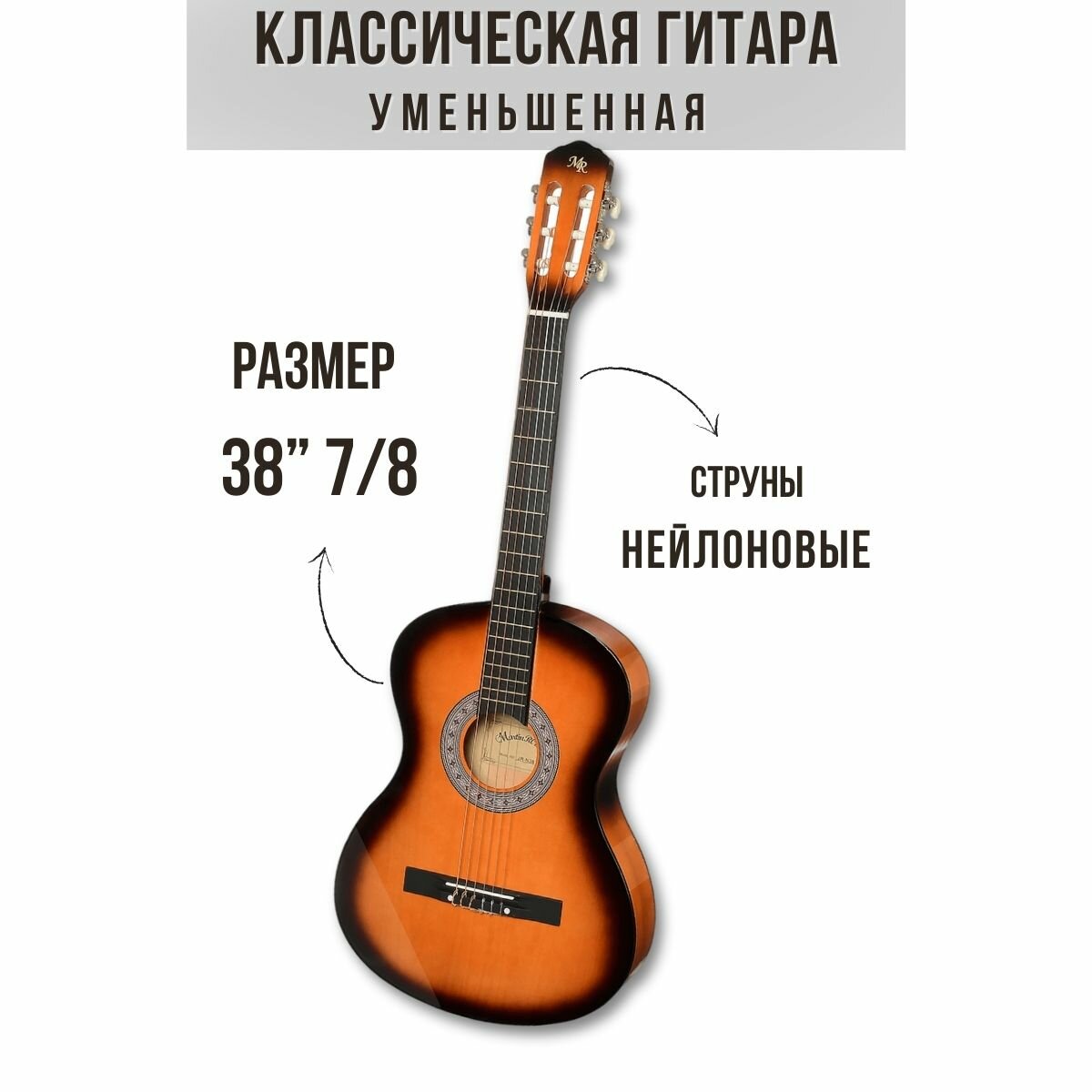 СохранитьУменьшенная гитара классическая MARTIN ROMAS JR-N38 SB, размер 38” (7/8), цвет санберст, струны нейлоновые интересное: