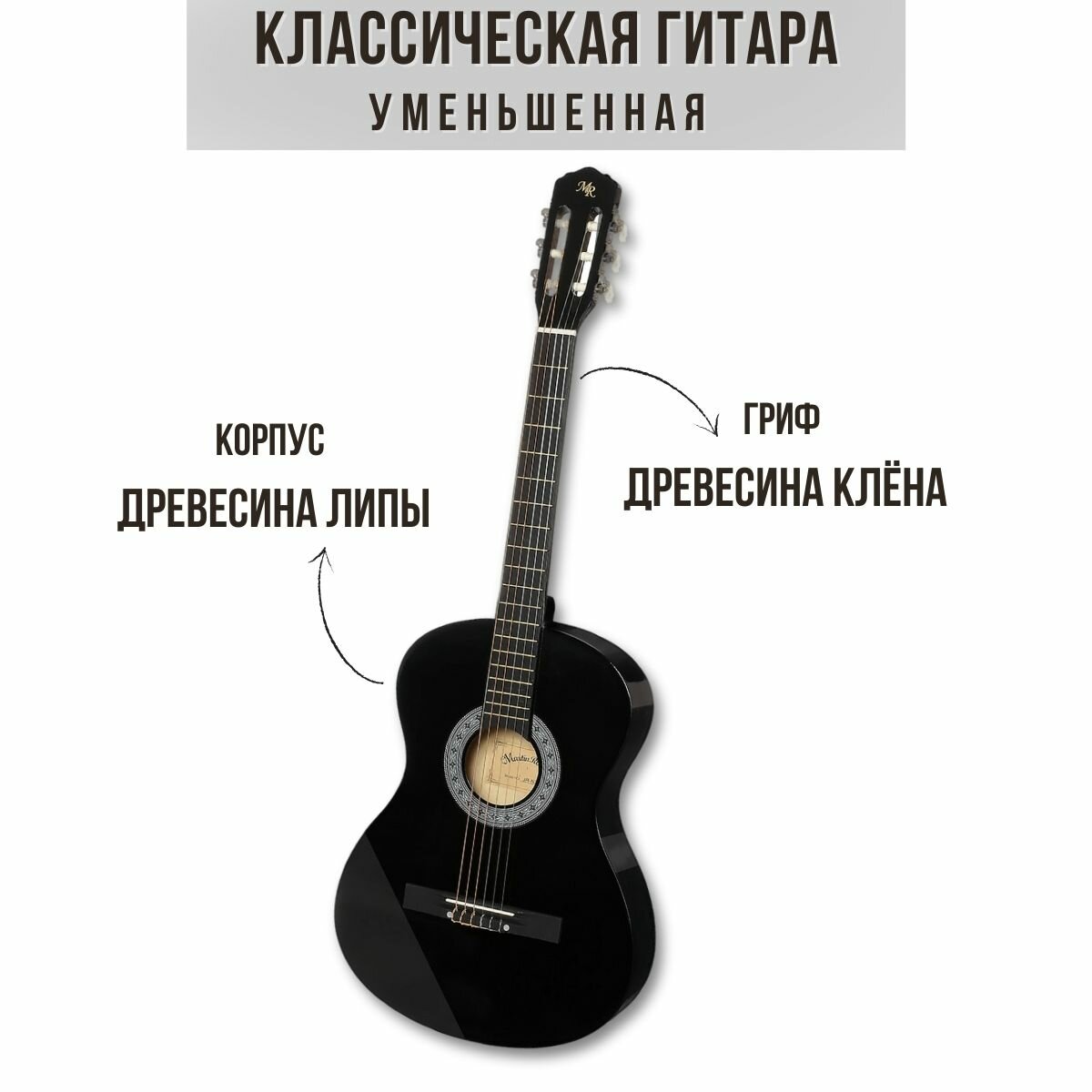 СохранитьУменьшенная гитара классическая MARTIN ROMAS JR-N38 BK, размер 38” (7/8), цвет черный, струны нейлоновые интересное: