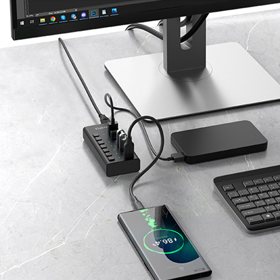 | Плюсы: | наконец-то нашел нормальный хаб - отличная сборка, нормальный кабель, который можно двигать без боязни, что хаб отключится, достойный блок питания в комплекте, отличные выключатели |