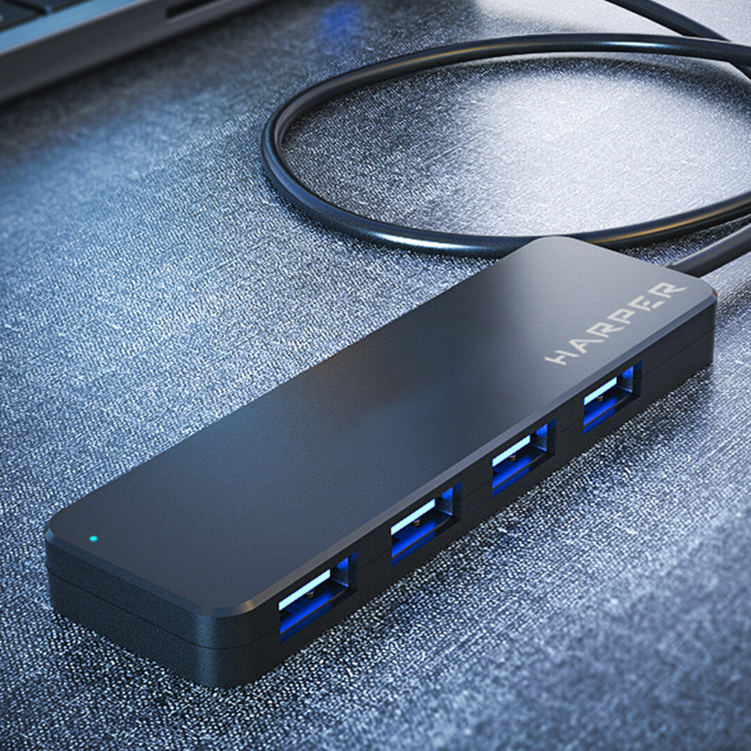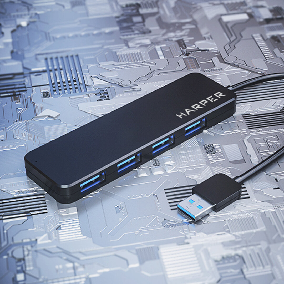 Купить USB Концентратор HARPER HUB-04P / скорость передачи данных до 5 Гб / с, черный
