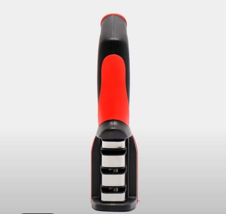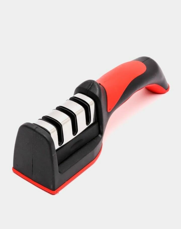 | Плюсы: | + удобная прорезиненная ручка, снизу есть ножки-накладки, ножеточка не будет скользить по поверхности и в руке