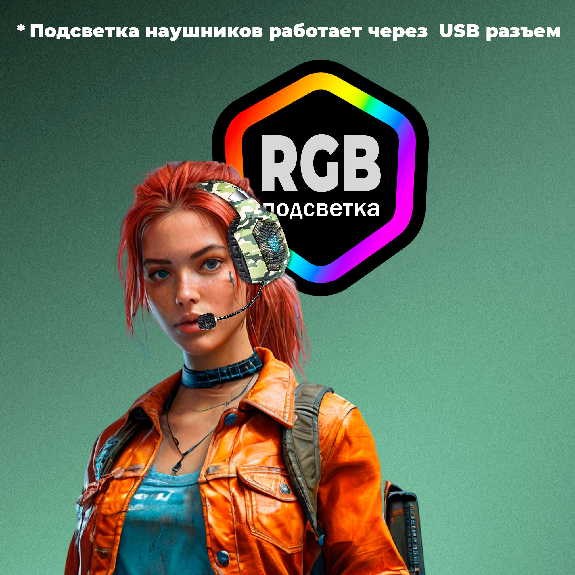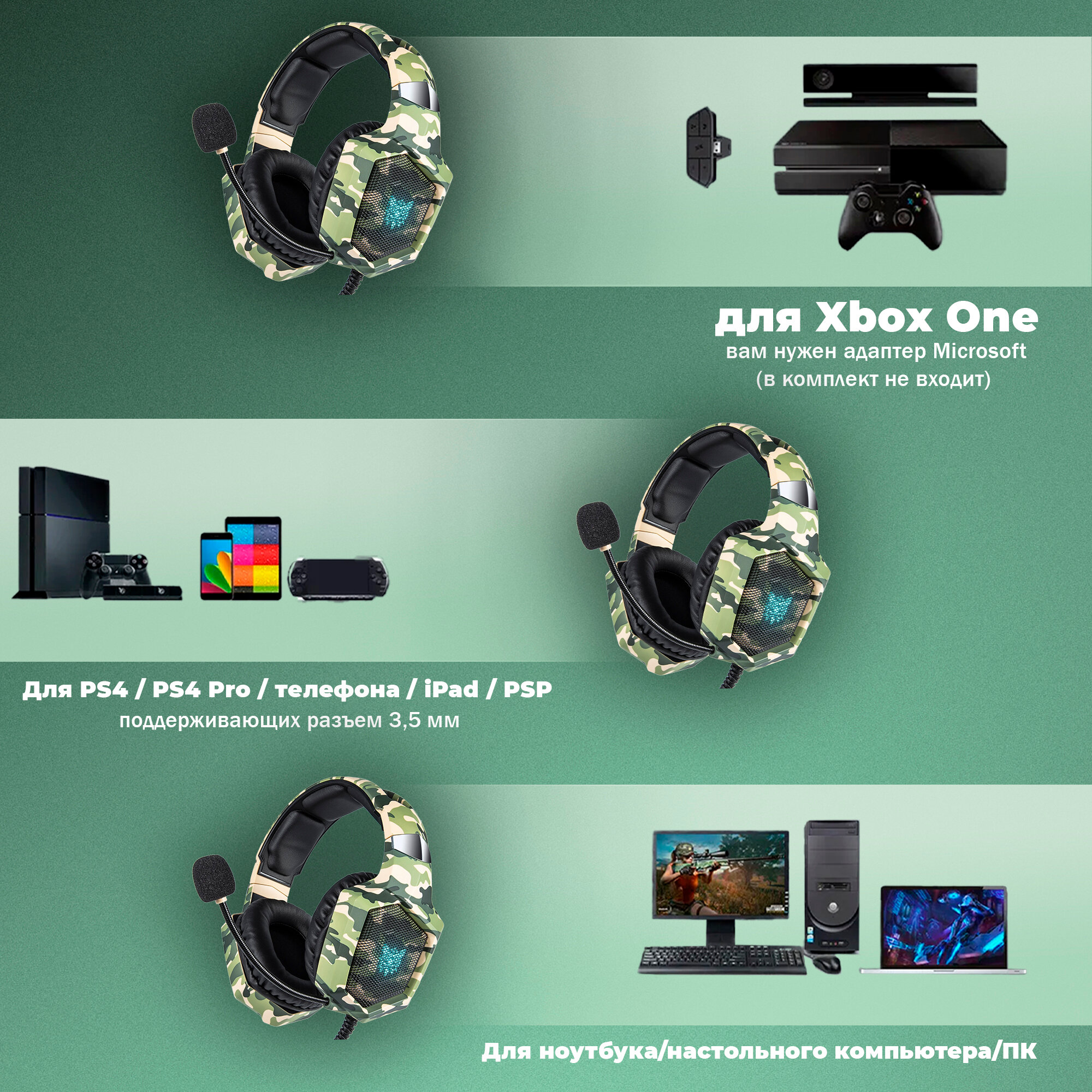 Наушники игровые Onikuma K8 RGB Light - Камуфляж Зеленый