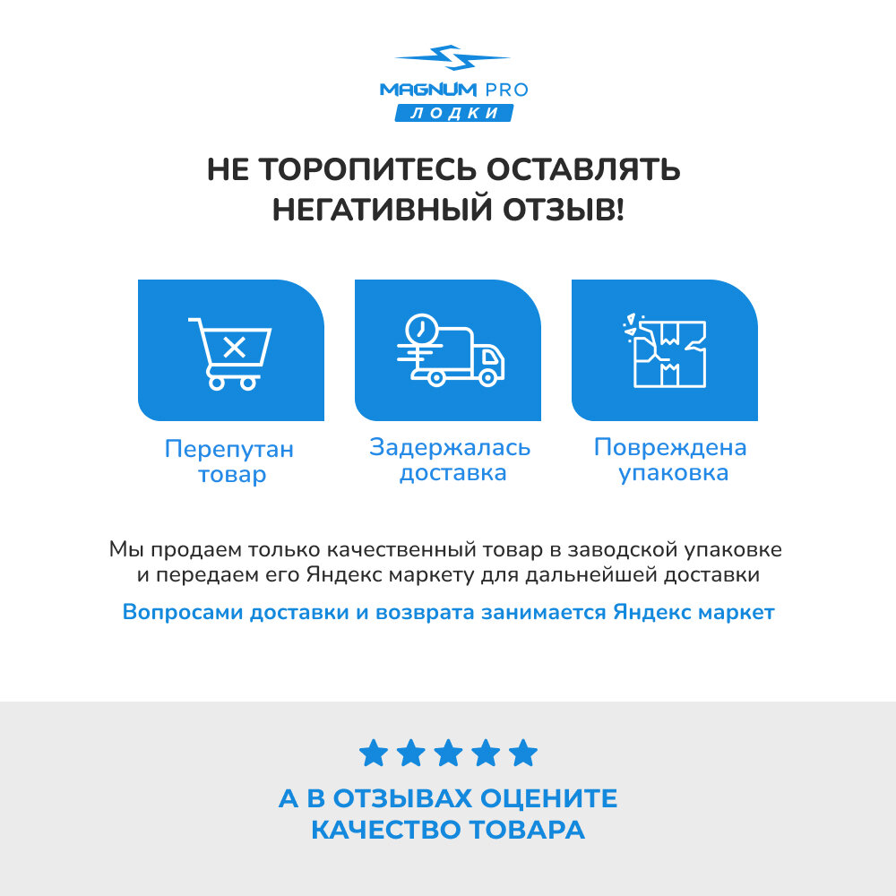 | Отзыв: | Лодка пришла с заводским браком, пришлось вернуть. Обмен товара на качественный ресурсом не предусмотрен. |