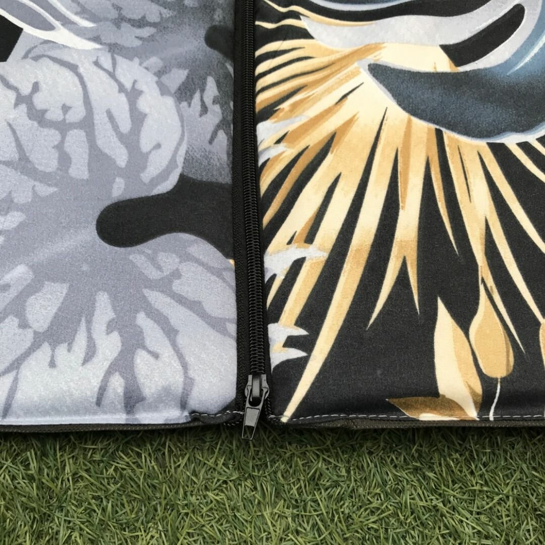 Коврик двойной на молнии 155x(55+55)x1,0 см, 4 слож., наполнитель пенка, Перья на черном, арт. 1165