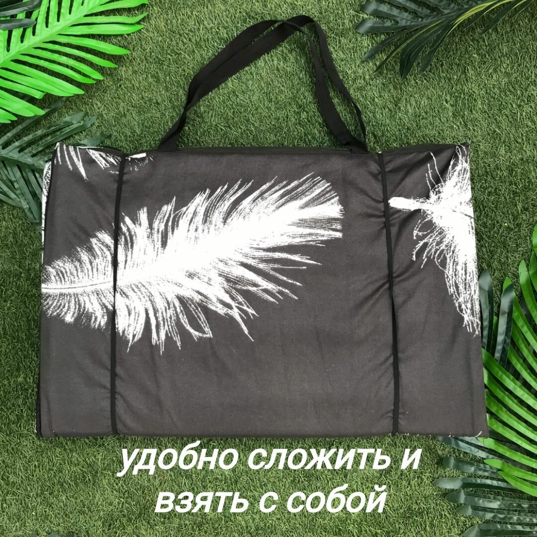 Коврик двойной на молнии 155x(55+55)x1,0 см, 4 слож., наполнитель пенка, Перья на черном, арт. 1165