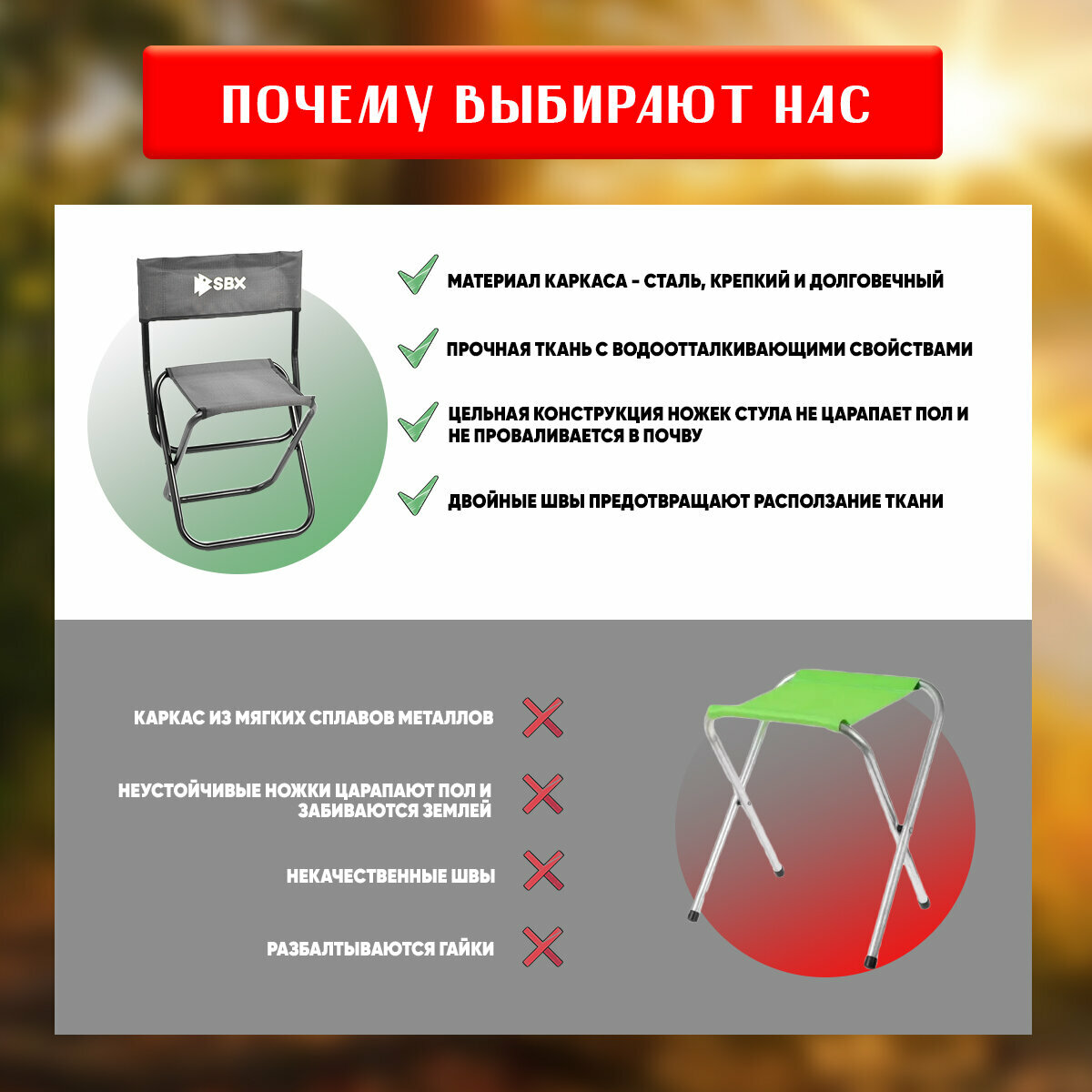 Стул складной туристический SBX SSM-02 со спинкой, выдерживает нагрузку до 120 кг, цвет Хаки интересное: