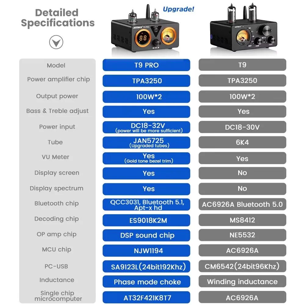 AIYIMA Audio T9 PRO Bluetooth ламповый усилитель 100 Вт × 2, no power supply интересное: