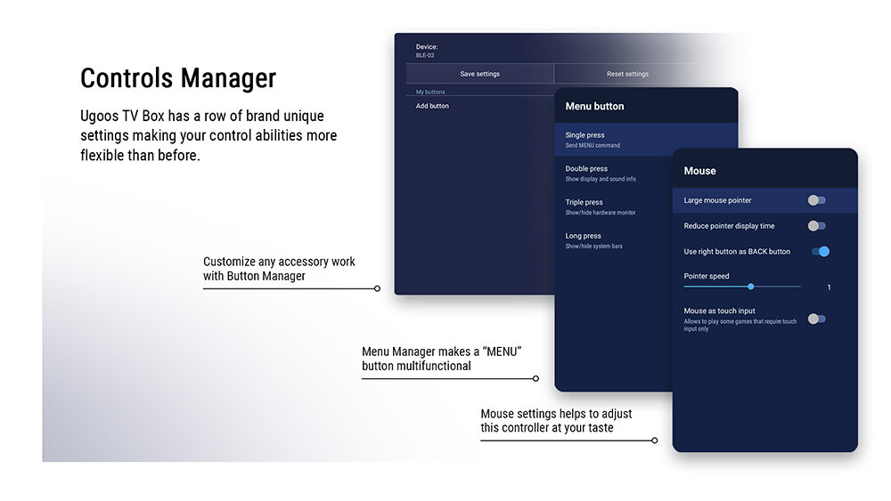 | Минусы: | Разочарован в пульте ugoos, на другой приставке пульт китайский, в разы удобнее. Подсветки нет, кнопок мало, при подключении пару секунд тупит. |