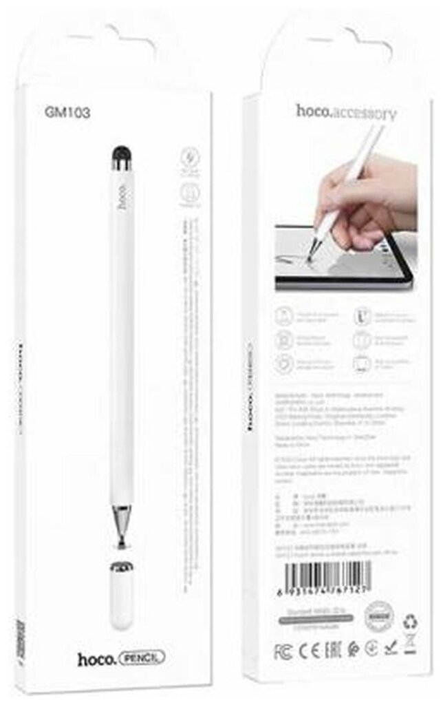 Стилус HOCO GM103 универсальный с двойным наконечником для сенсорных экранов Android/iPhone,iPad, Белый