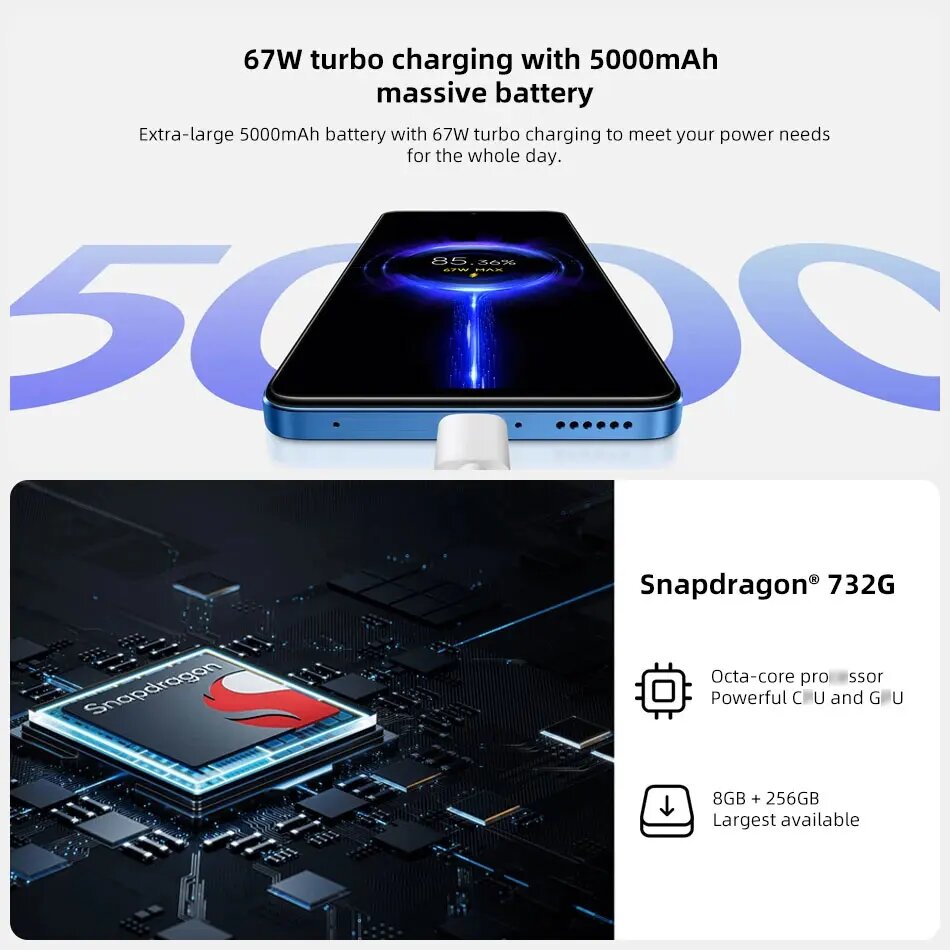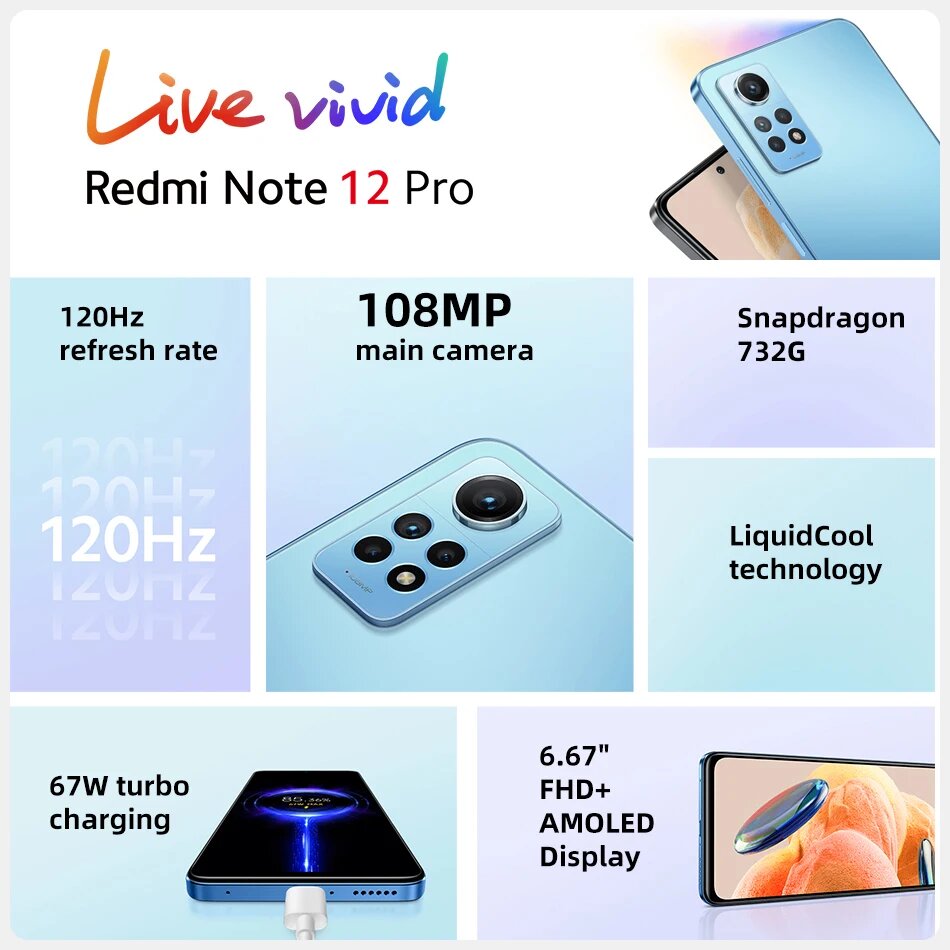 Купить Xiaomi Redmi Note 12 Pro 4G дисплей 732 МП основная камера Snapdragon 5000G 67 Вт турбо-зарядка мАч, Standard, Xiaomi, Redmi Note 12 Pro, Смартфон, Голубой, 6ГБ, 128ГБ, global, новый, 01.10.2022