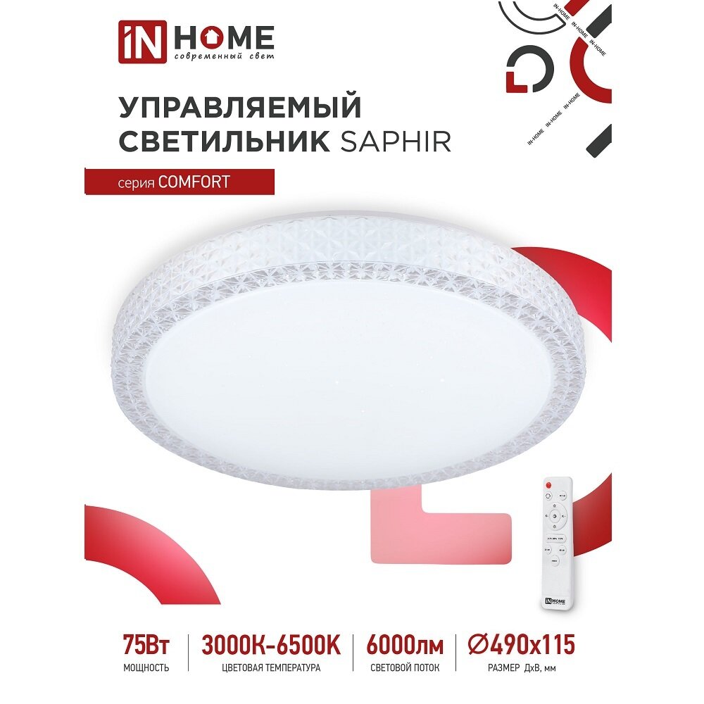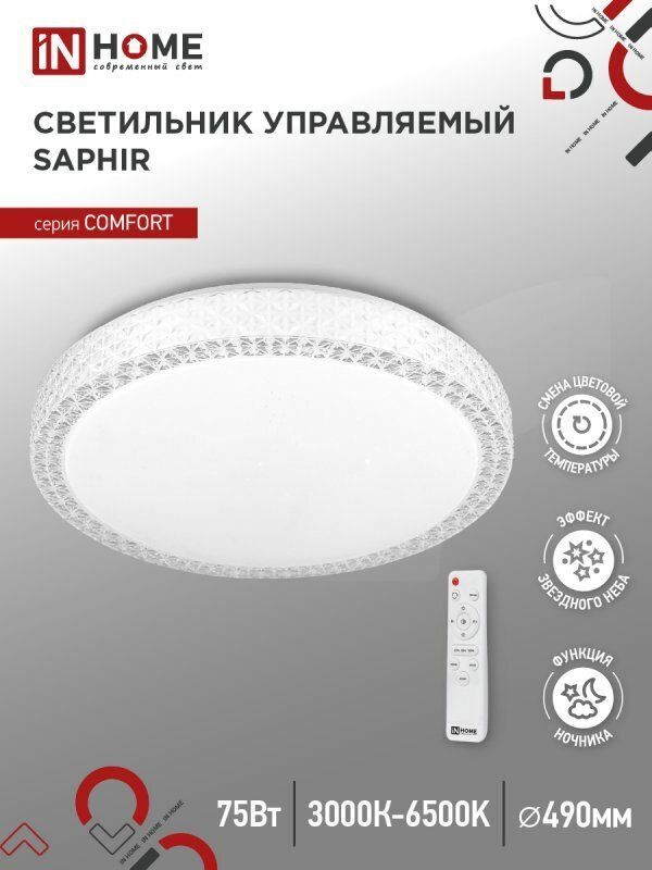 Светильник диодный COMFORT SAPHIR 75Вт 3000-6500K 6000Лм пульт ДУ, белый IN HOME 4690612035123