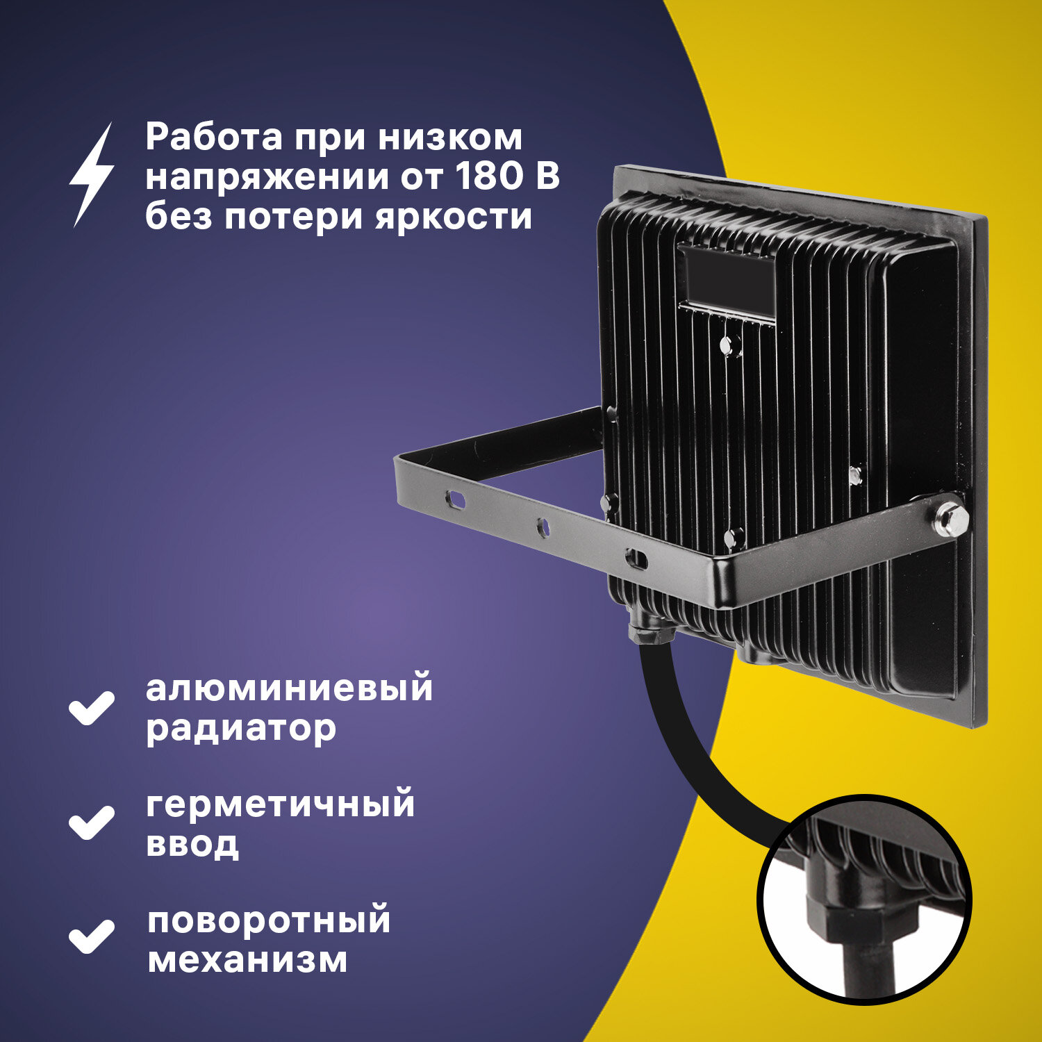 Прожектор светодиодный PROFI 70Вт, 180-240В, IP65, 6500К, 7000Лм, черный, Ritter, 53409 3