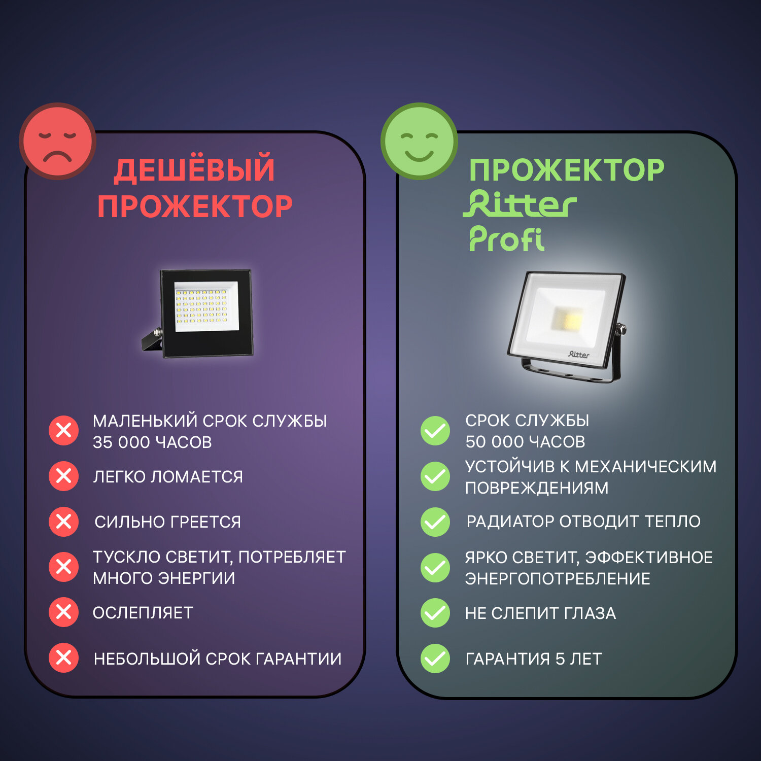 Светодиодный прожектор RITTER Profi гарантия 5 лет 100лм/Вт 100 Вт 2700К 53430 7