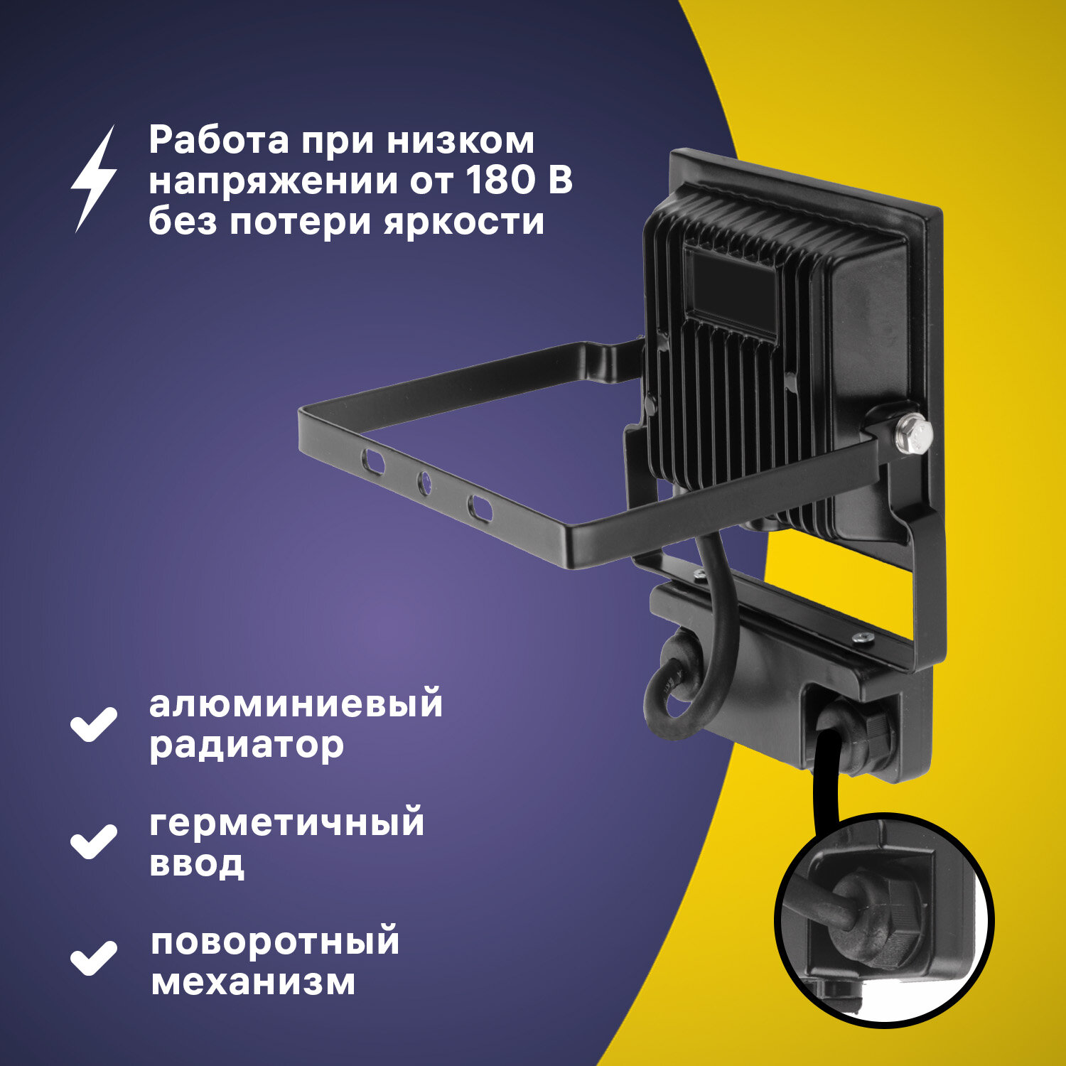 Прожектор светодиодный PROFI 70Вт, 180-240В, IP65, 4000К, 7000Лм, черный, Ritter, 53418 5