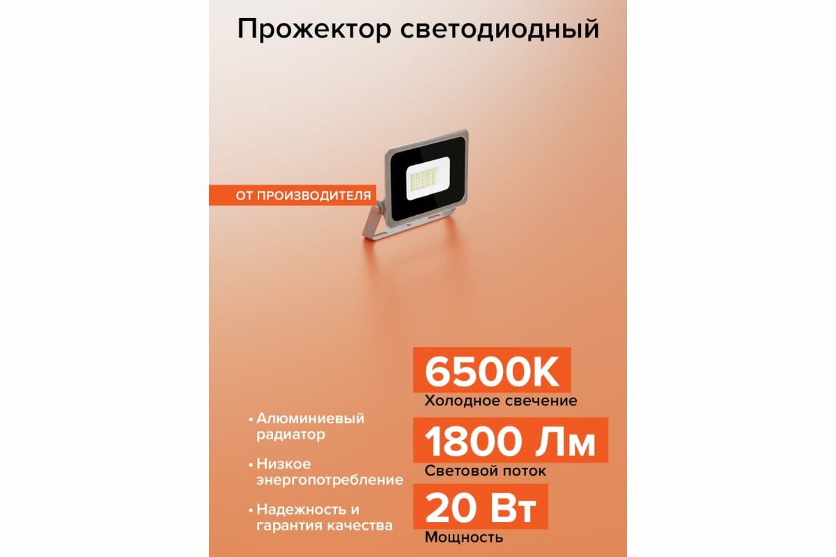 СохранитьПрожектор 20 Вт WOLTA WFL-20W/07 6500К IP65 1800лм серый 133х113/85х32 1/40 уличный настенный накладной интересное: