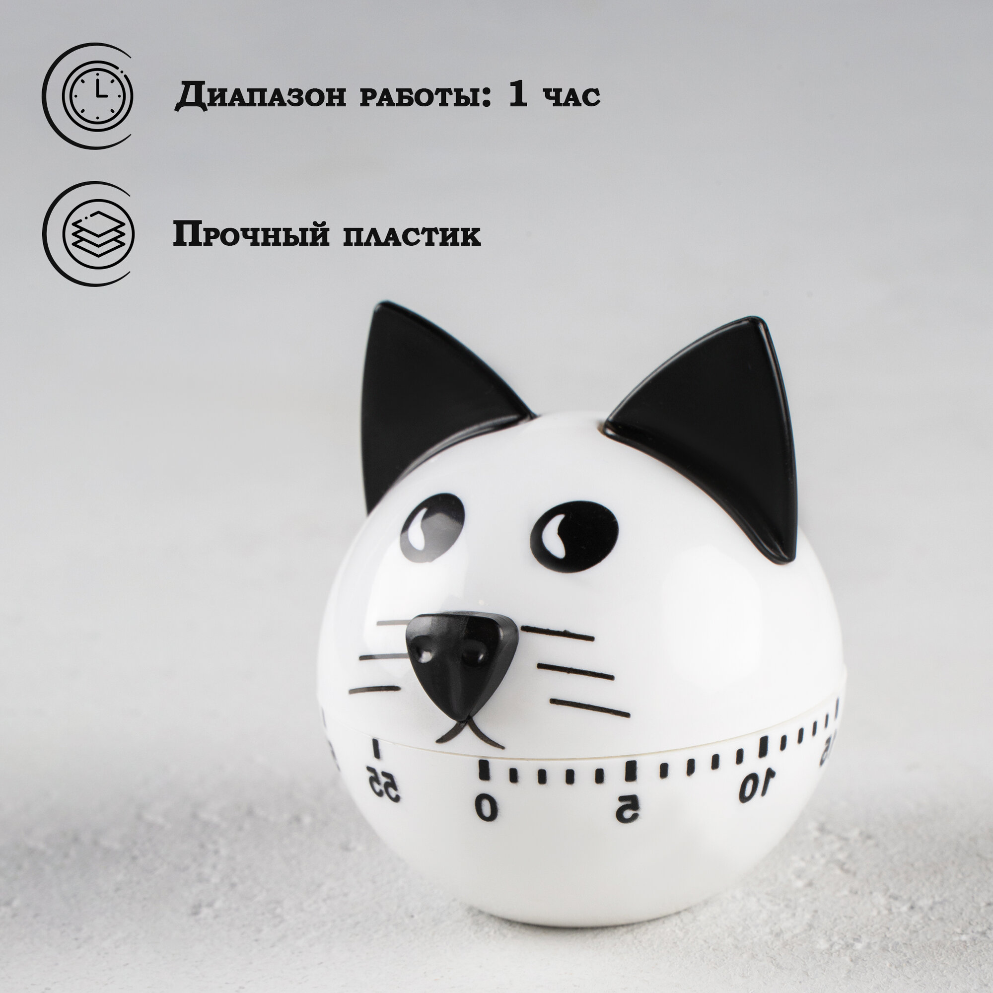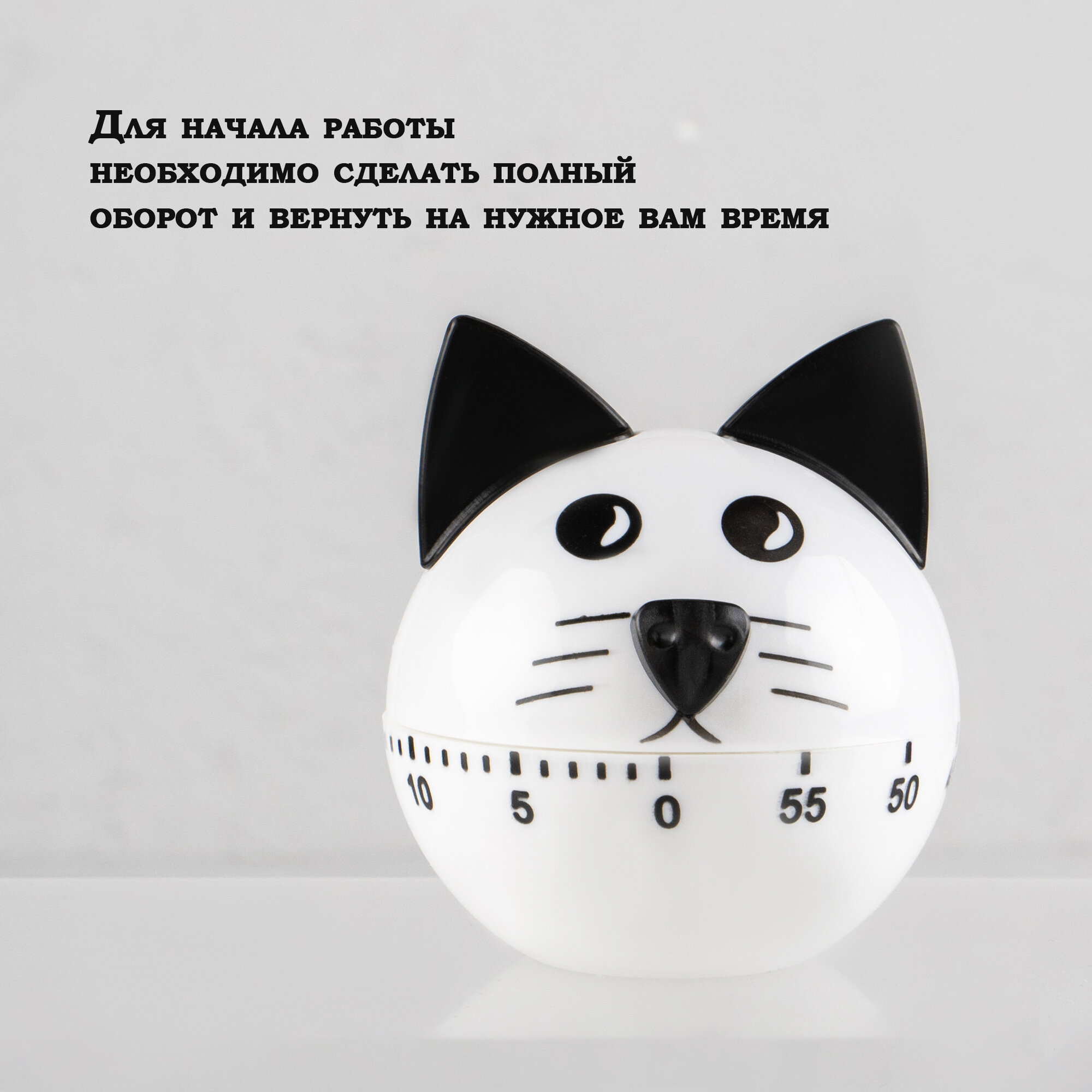 Купить Таймер механический для кухни Доляна «Котёнок», механический, цвет белый