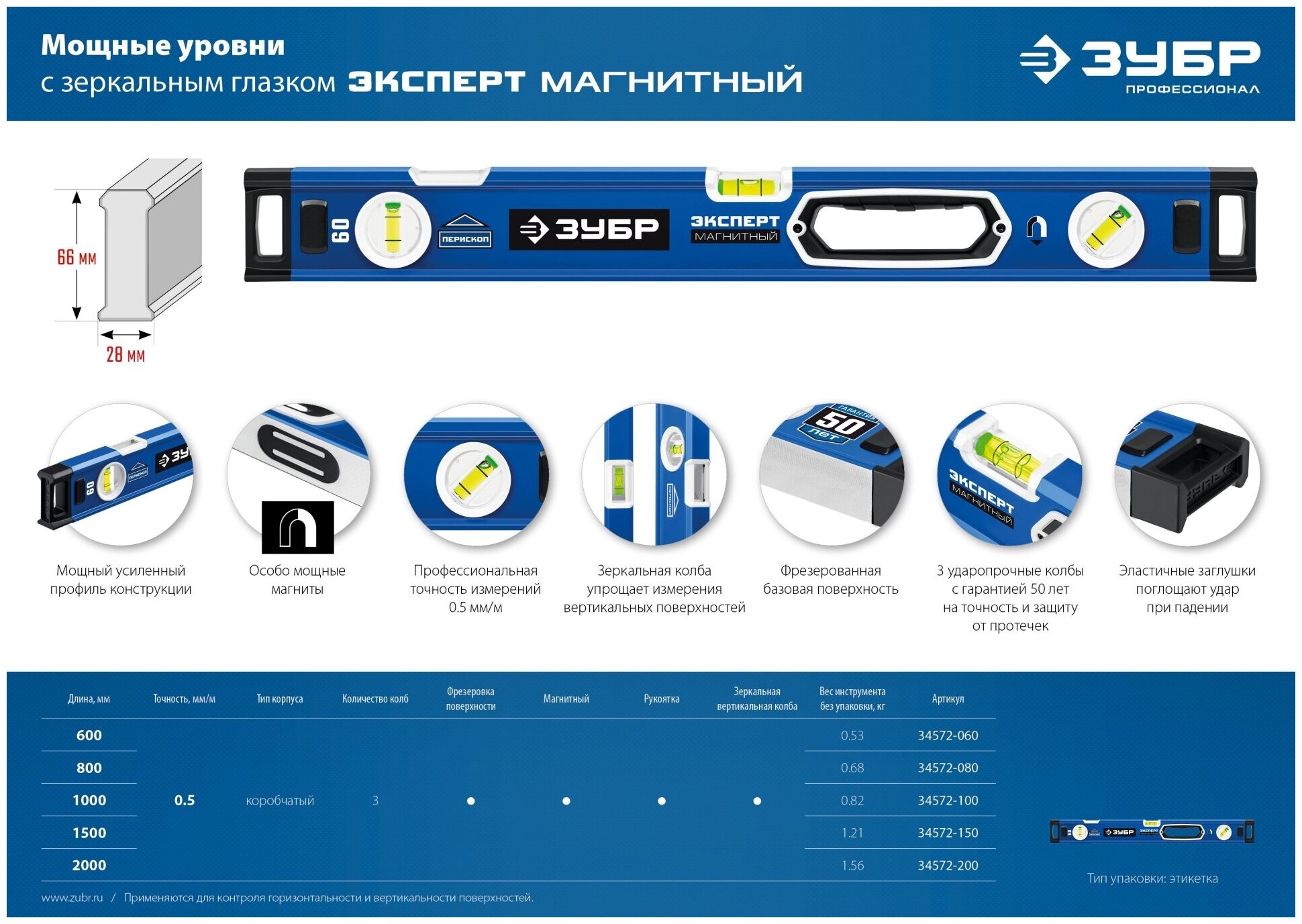 ЗУБР эксперт-м, 1000 мм, с зеркальным глазком, мощный магнитный уровень, Профессионал (34572-100)
