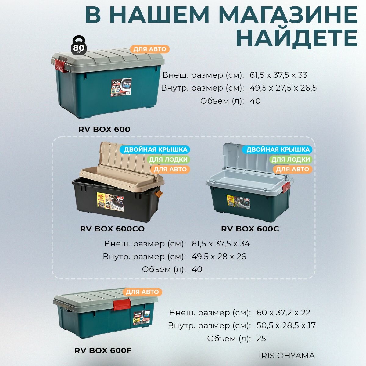 Ниже Вы можете прочитать отзывы на Экспедиционный прочный ящик (бокс, коробка) для хранения IRIS RV BOX 700, 62л, ознакомится с подробными характеристиками, посмотреть интересные обзоры и фотографии на Экспедиционный прочный ящик (бокс, коробка) для хранения IRIS RV BOX 700, 62л.