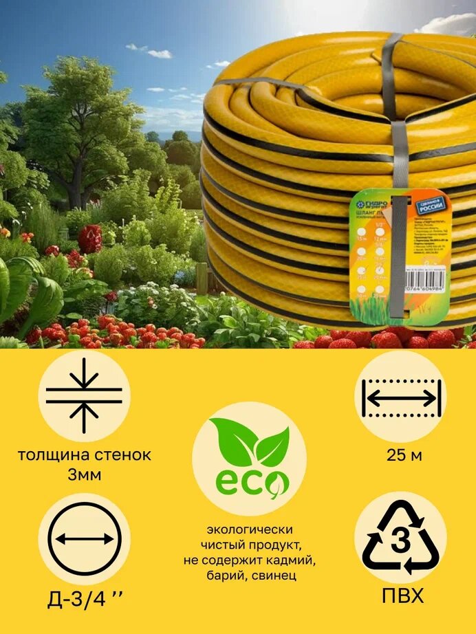 Купить Шланг поливочный 3/4 дюйма, 25 м, армированный, 3-х слойный Гидроагрегат желтый с черной полосой