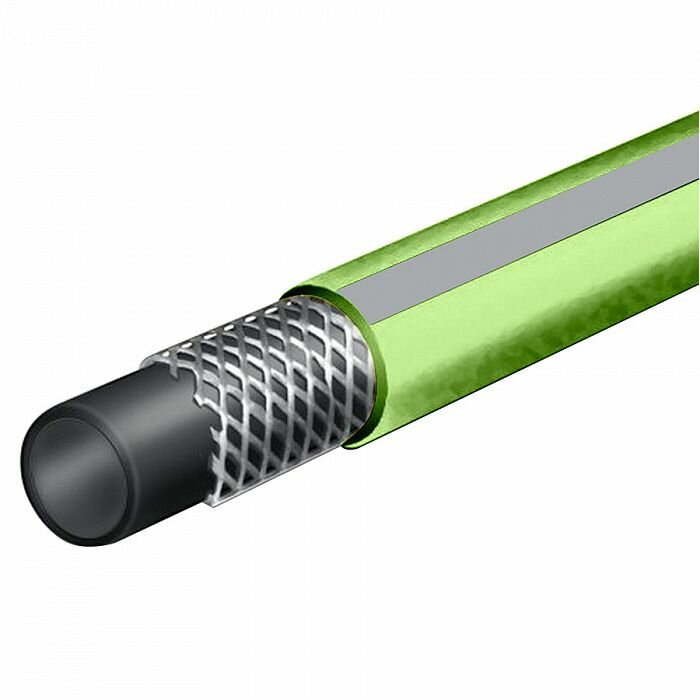 Купить Шланг поливочный 3/4 дюйма, 25 м, армированный, 3-х слойный Гидроагрегат салатовый с серой полосой