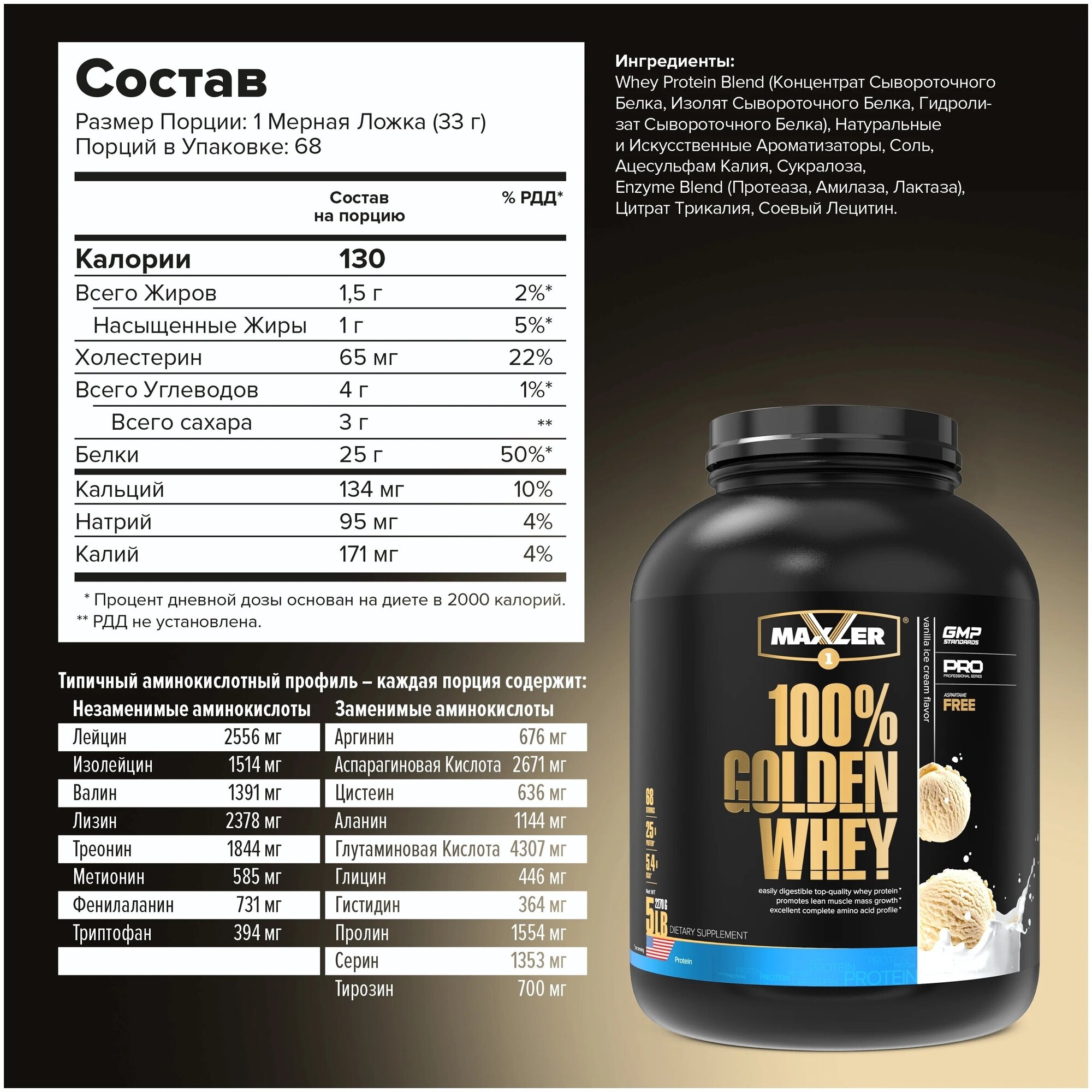 СохранитьЧистый сывороточный белок премиум класса 100% Golden Whey Protein 2270 гр 5 lb (Maxler) Ванильное мороженое интересное: