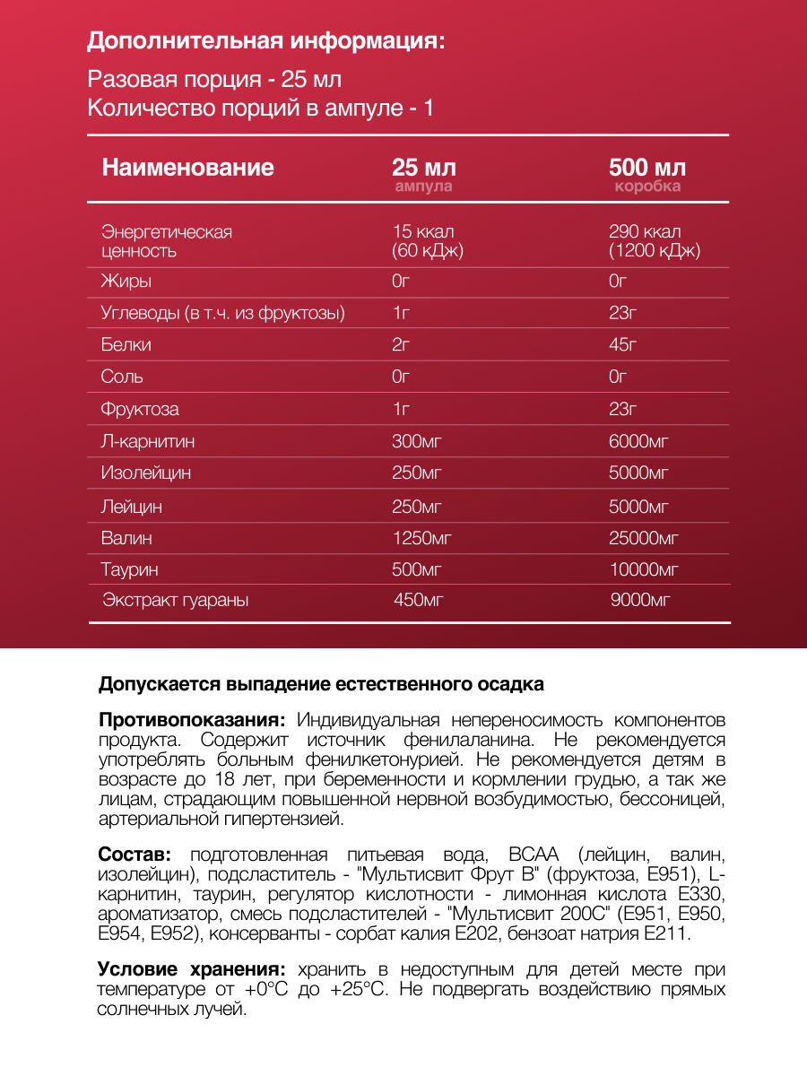 Аминокислоты BCAA 2:1:1 (БЦАА) "3000"спортивное питание, для набора массы, выносливости, со вкусом барбарис, 20 ампул по 25 мл