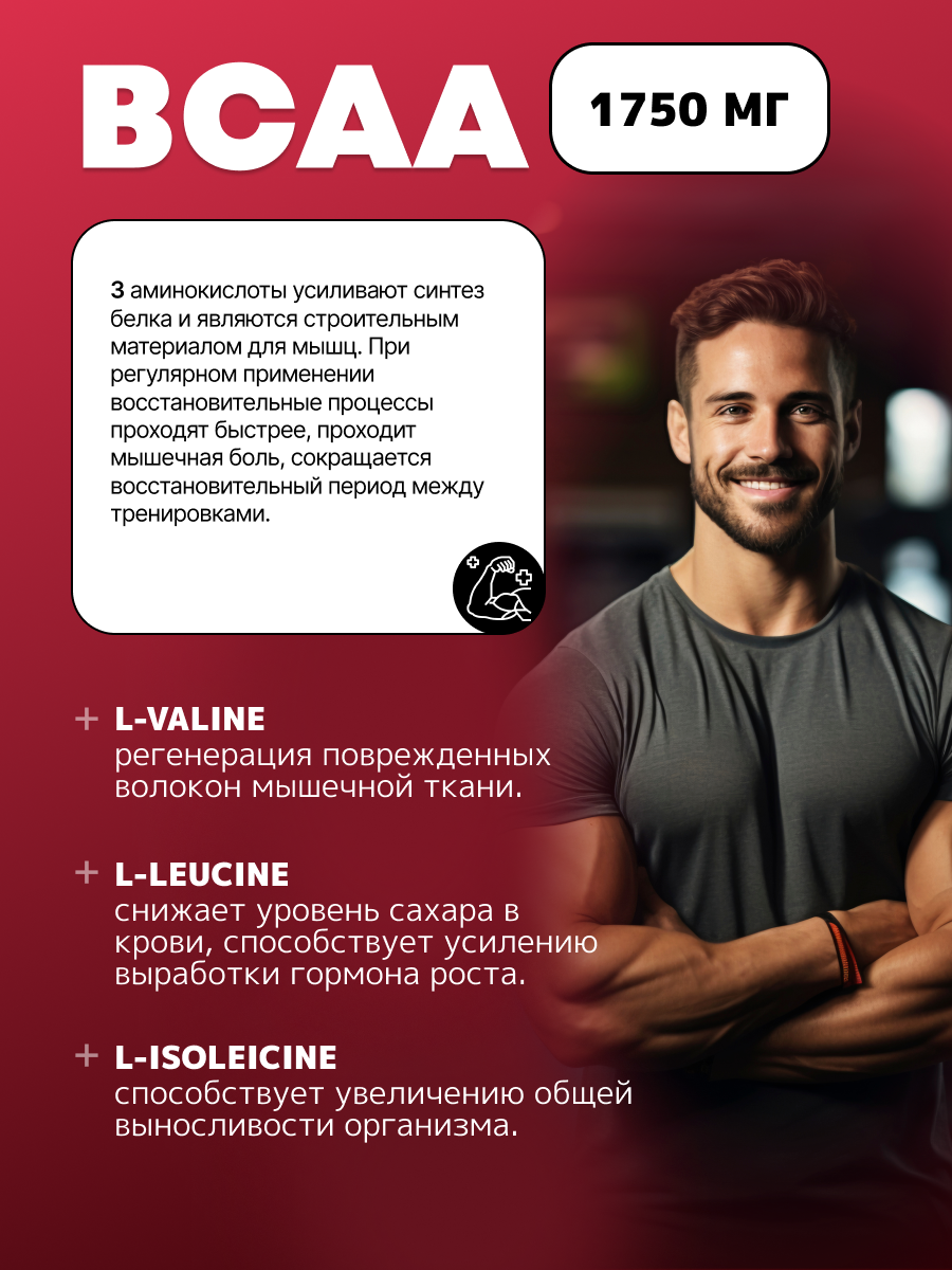 Аминокислоты жидкие BCAA 2:1:1 (БЦАА) "3000", гранат грейпфрут, 20 ампул по 25 мл, спортивное питание, для набора массы, выносливости