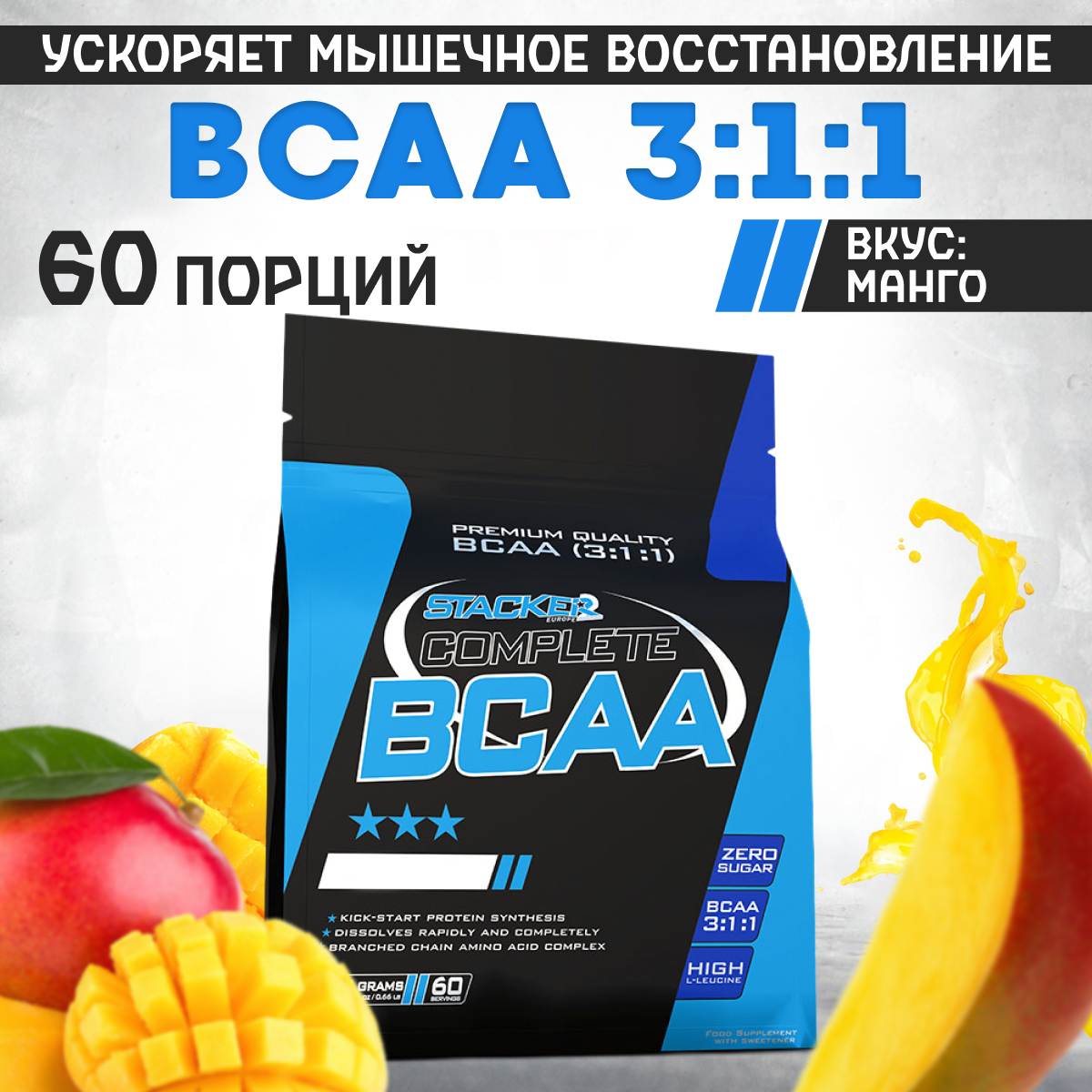 Купить Аминокислоты Complete BCAA Stacker2 манго, 300 гр. БЦАА, спортивное питание