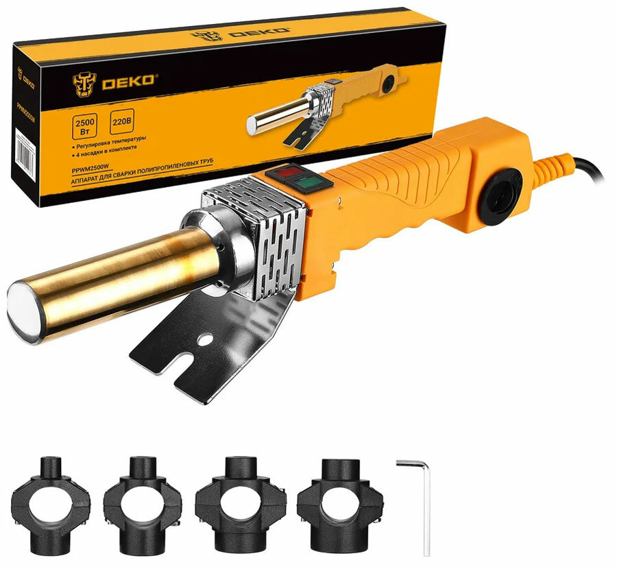 Аппарат для сварки полипропиленовых труб Deko PPWM2500W, 4 насадки (20-40 мм)
