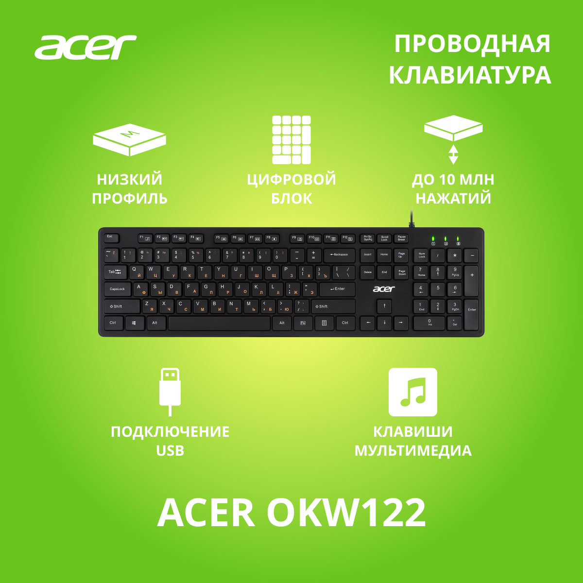 Клавиатура Acer OKW122, мембранная, проводная, USB, черный (ZL. KBDEE.00C) интересное: