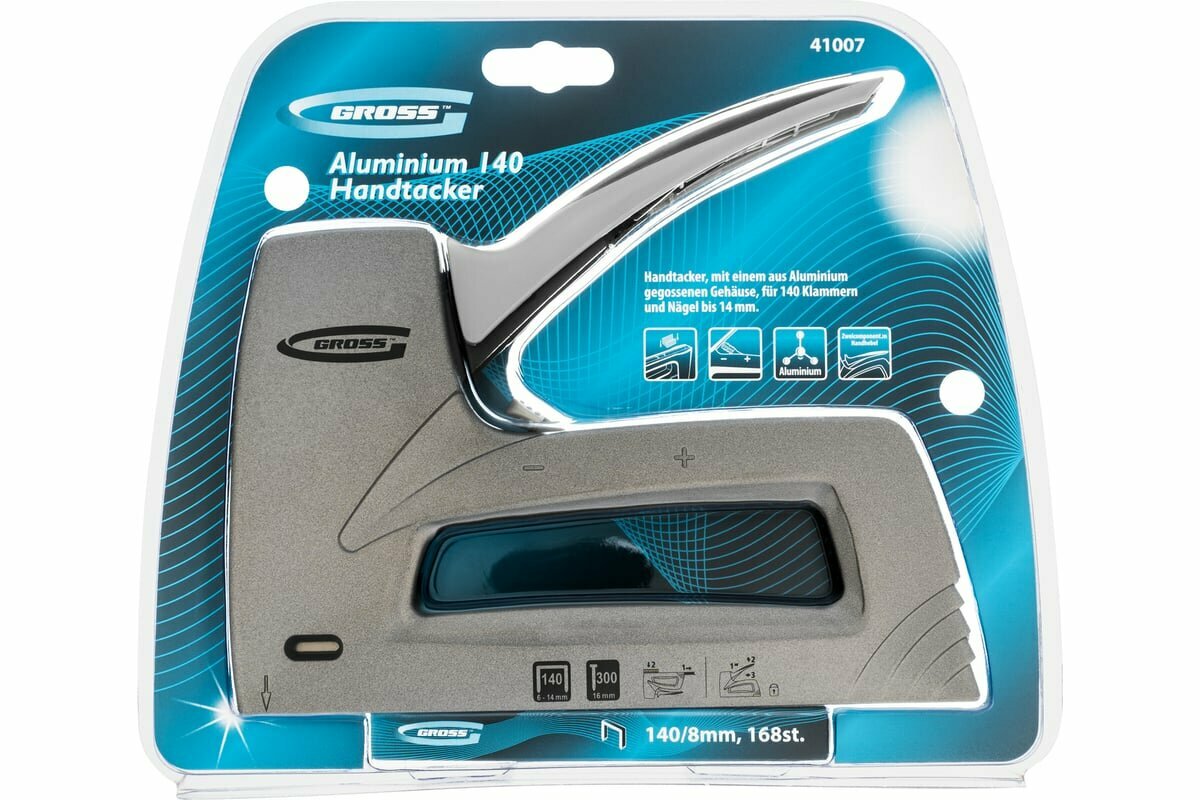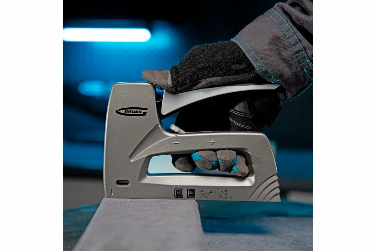 Строительный степлер Gross, тип 140/300 под скобы 6 - 14 мм, алюминиевый корпус