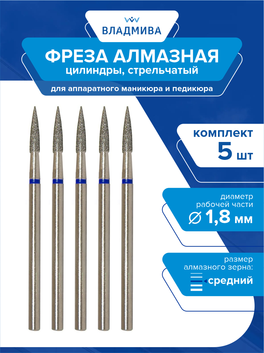 Фреза алмазная цилиндры стрельчатый, средней зерн. 1,8 мм. 5 шт.(866.104.245.100.018) интересное: