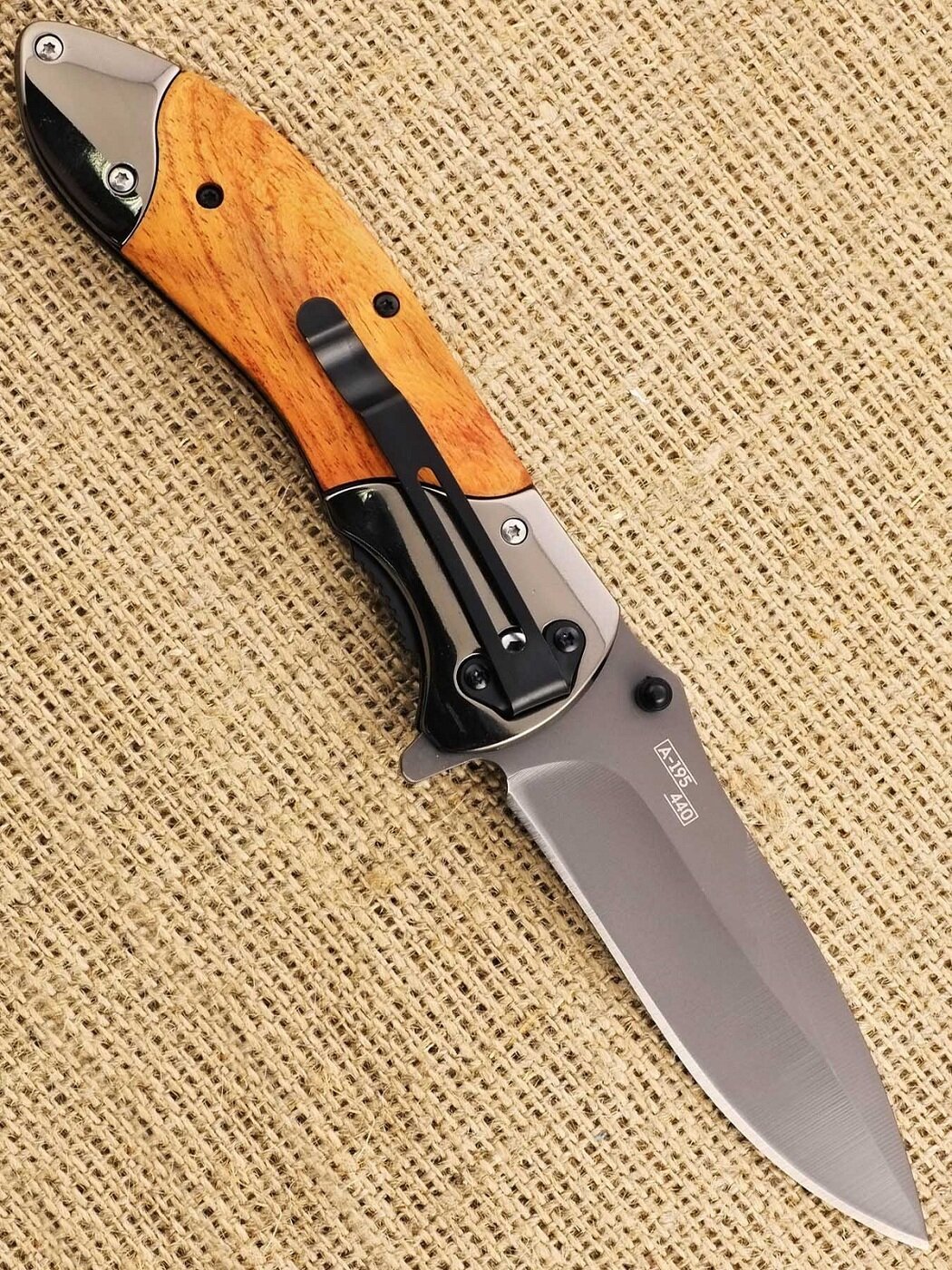 Купить Нож складной автоматический флиппер с деревянной рукоятью и клипсой Ножемир A-195
