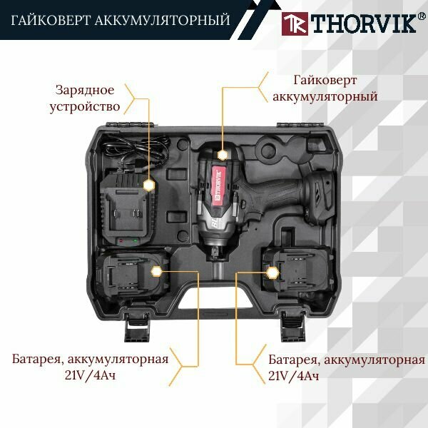 Гайковерт аккумуляторный ударный бесщёточный 1/2", 21В, 1700 Нм Thorvik THORVIK BBIW121700 | цена за 1 шт
