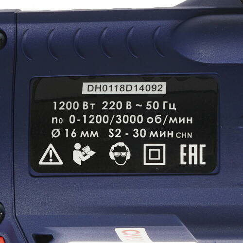 | Особенности конструкции | блокировка кнопки включения / дополнительная рукоятка / ограничитель глубины сверления / Ограничитель глубины / Рукоятки с резиновым покрытием |