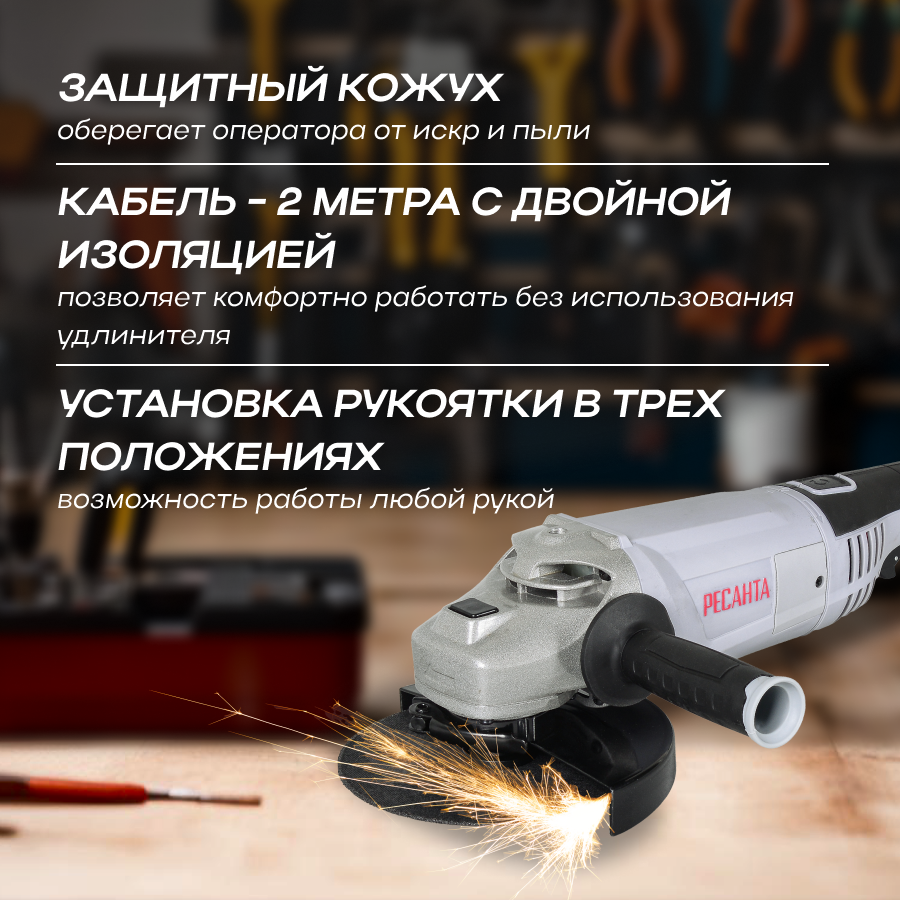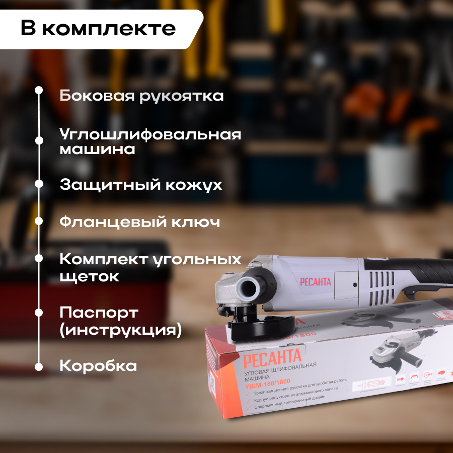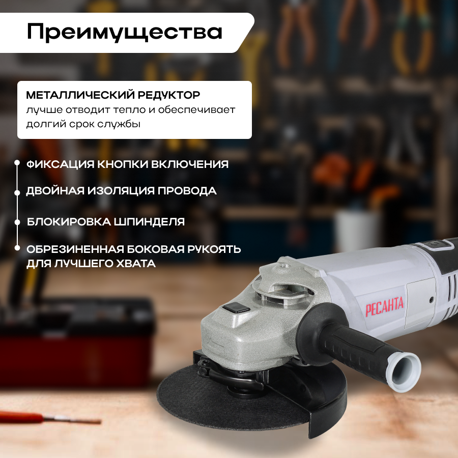 УШМ РЕСАНТА УШМ-180/1800, 1800 Вт, 180 мм, без аккумулятора