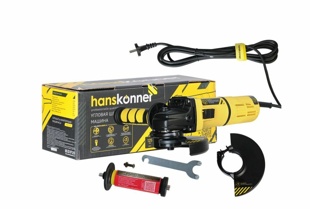 Болгарка, угловая шлифовальная машина УШМ Hanskonner HAG11125 сетевая (125мм, 1100Вт, 11000об/мин, 4м рез.кабель)