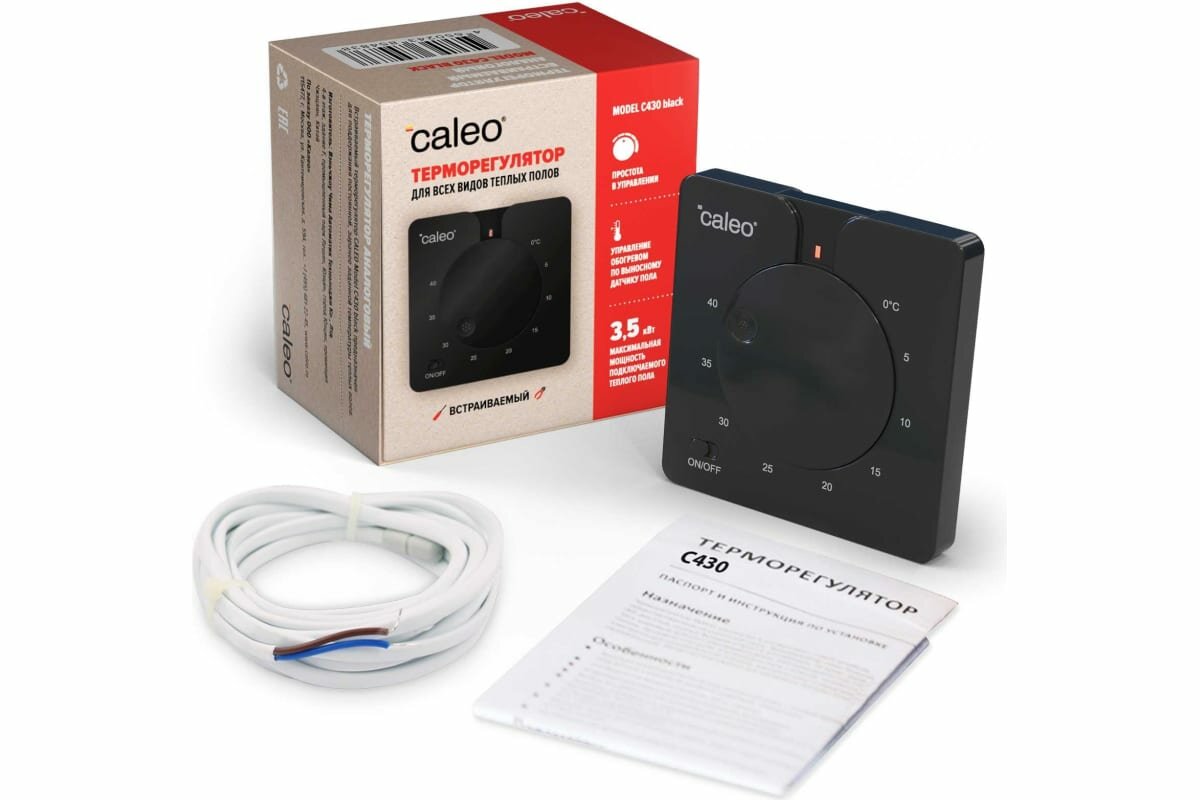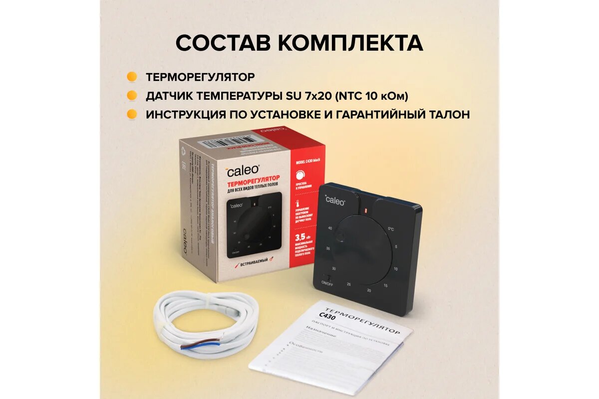 Терморегулятор Caleo C430 встраиваемый аналоговый, 3,5 кВт черный