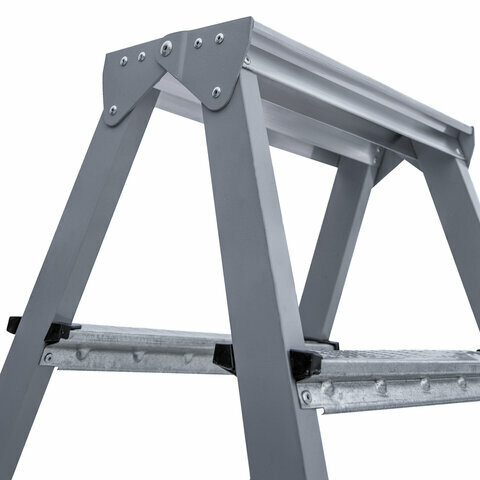 Купить Стремянка стальная двухсторонняя 2×2 ступени, высота площадки 0.44м, алюминиевая площадка 35×16см, до 150кг, вес 2.8кг новая высота