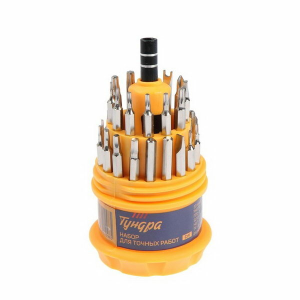 Набор для точных работ тундра, CrV, держатель с битами, в кейсе, 31 предмет