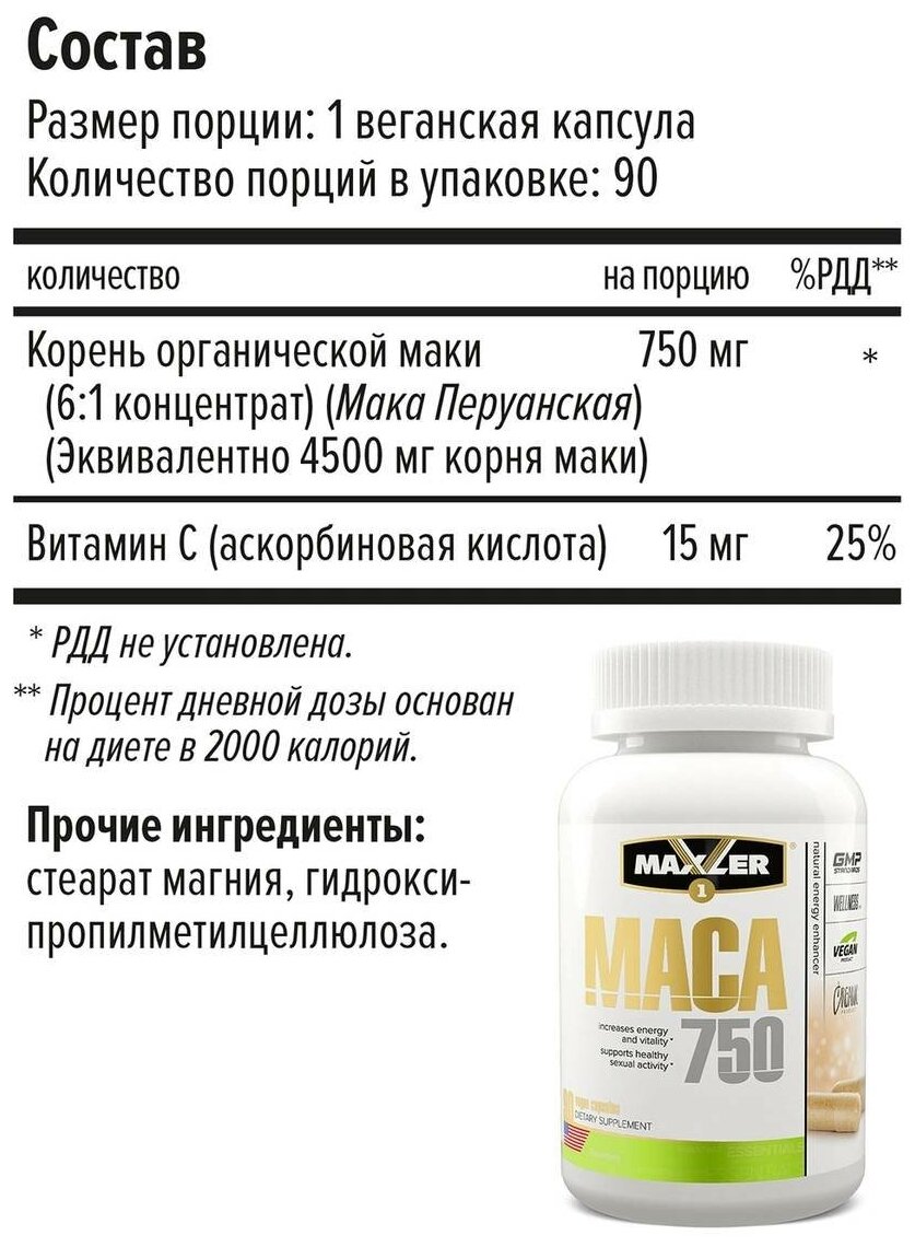 MAXLER USA Maca 750 6:1 (90 веган капсул)