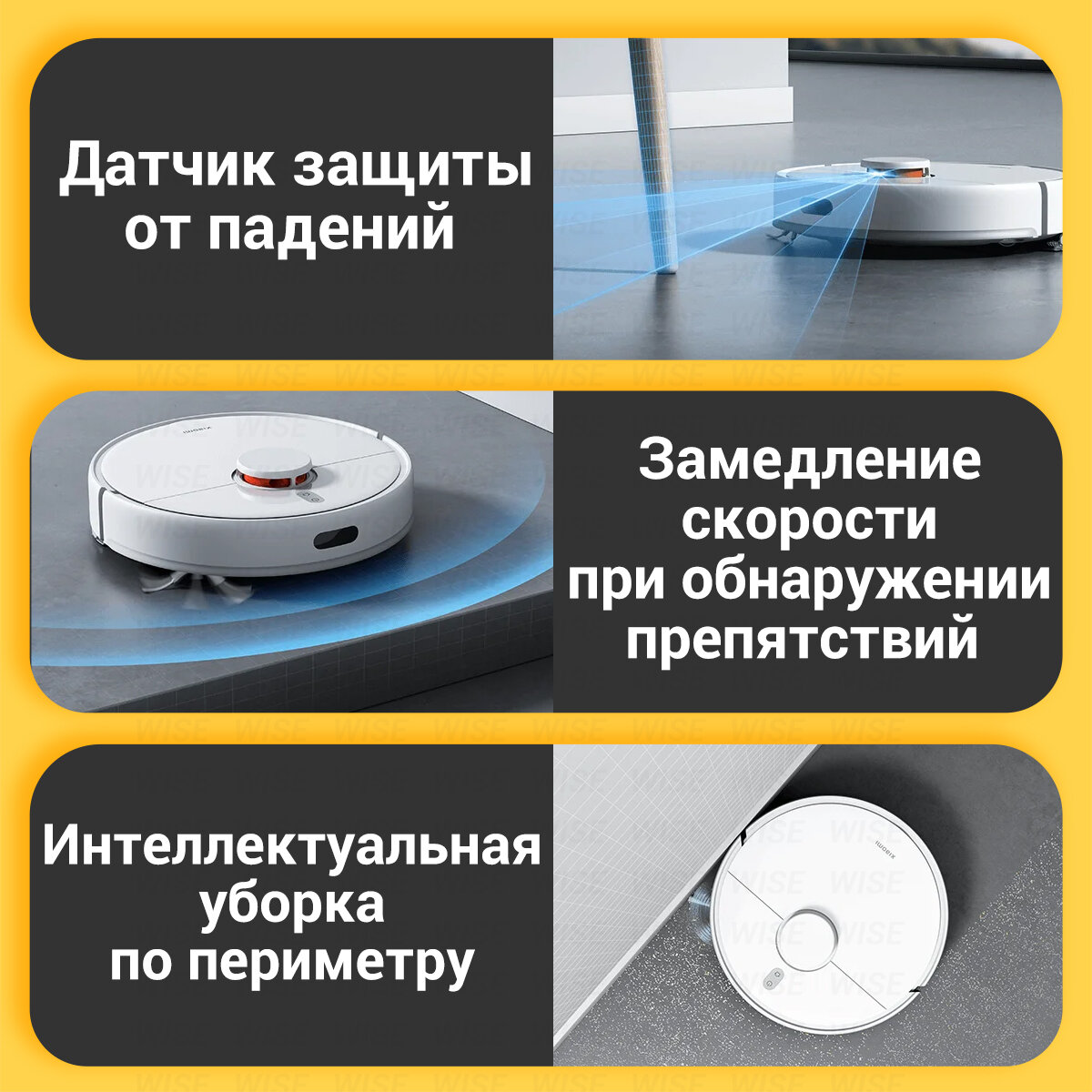 Регулируется уровень уборки и шума. Можно одновременно мыть пол и пылесосить. Русский язык.