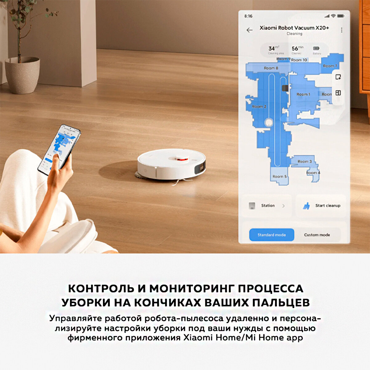 СохранитьРобот-пылесос "Xiaomi Robot Vacuum X20+" (White), управление со смартфона, влажная/сухая уборка интересное: