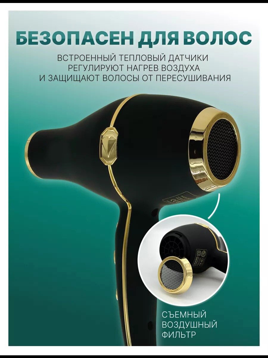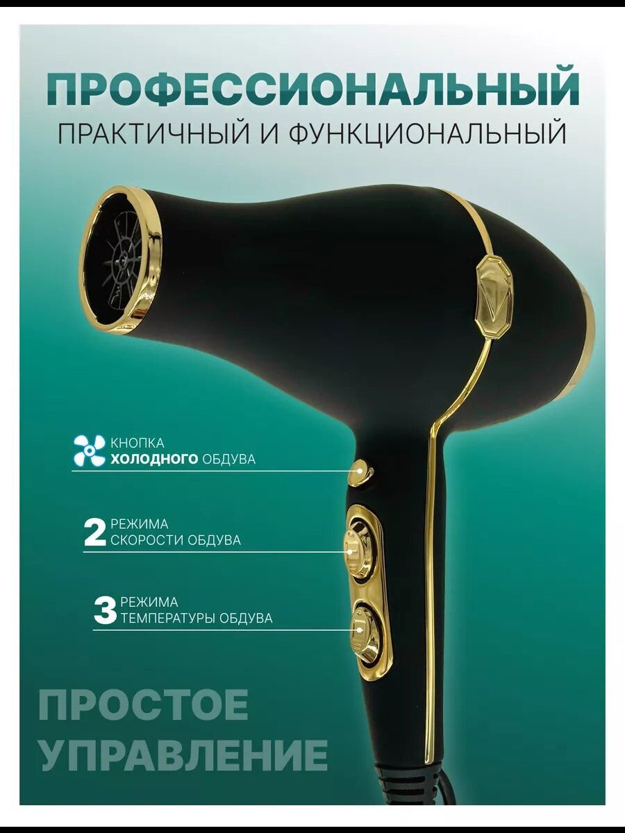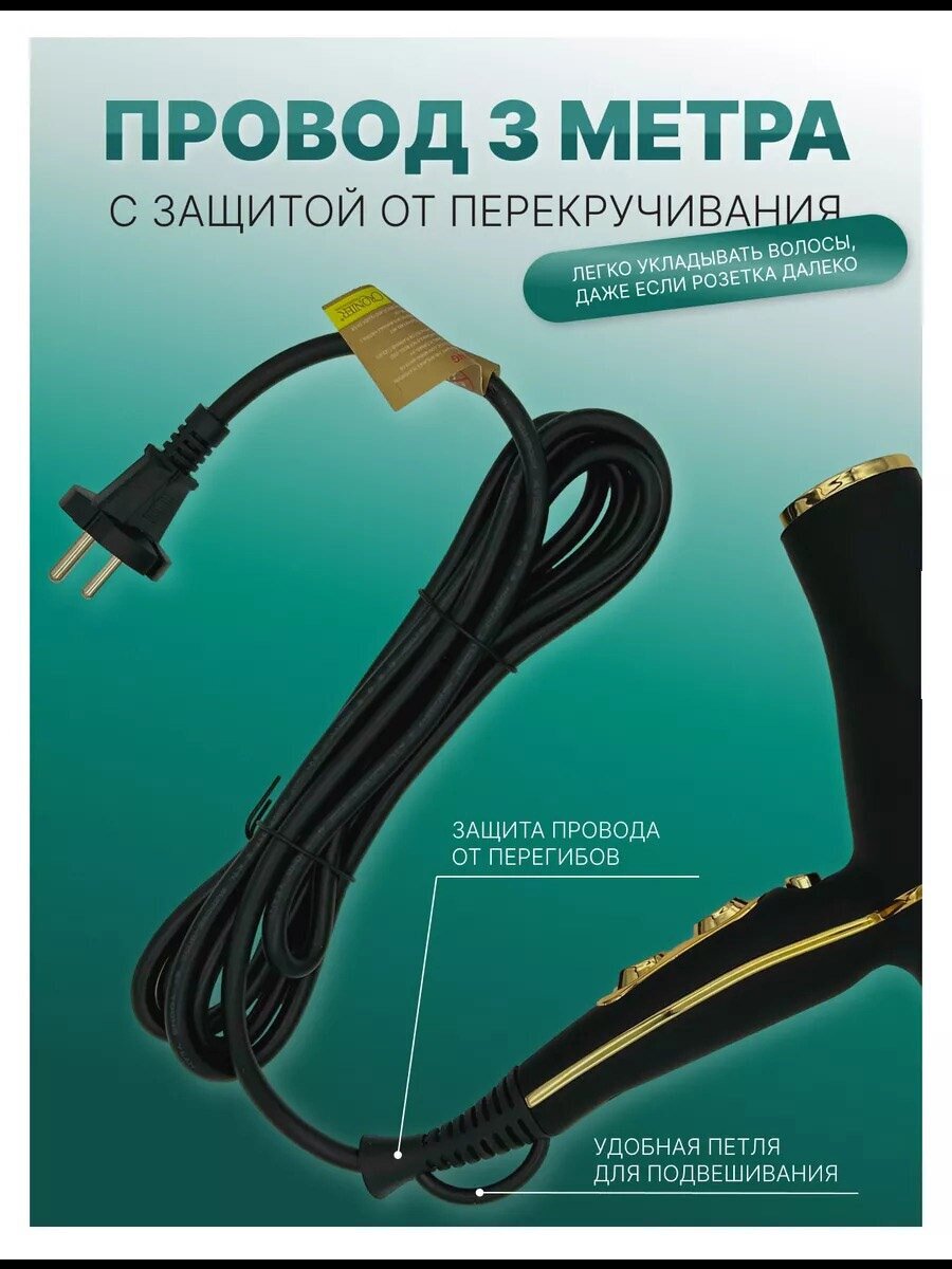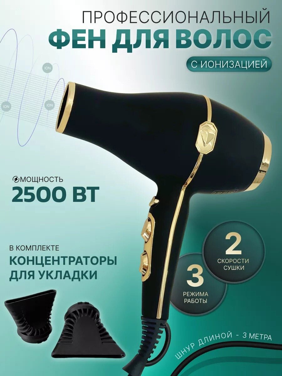 Профессиональный салонный фен A.D.R.C, ионизация, вращение шнура, черный интересное: