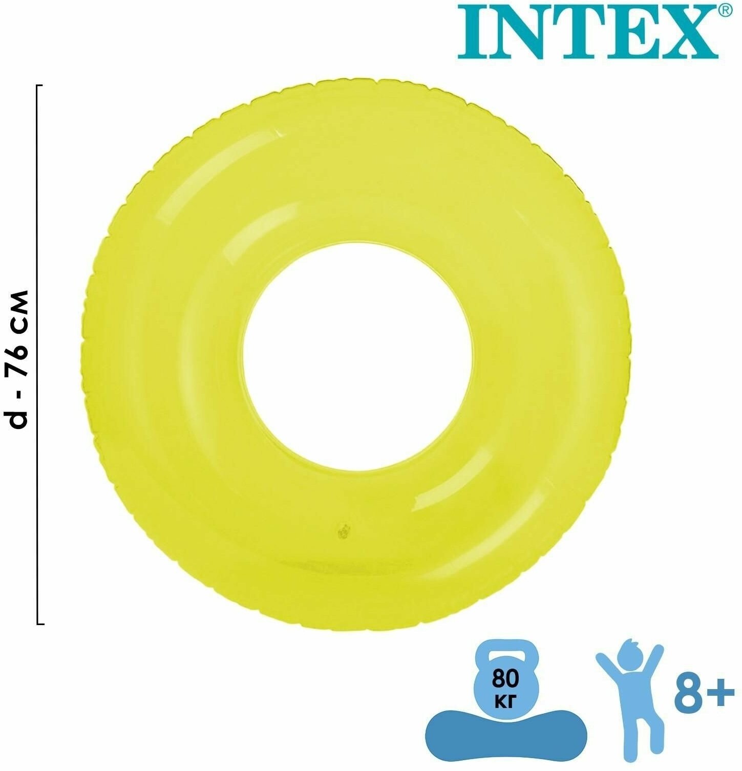 Круг надувной для плавания "Прозрачный" (желтый лайм) 76 см, от 8 лет, 59260 Intex