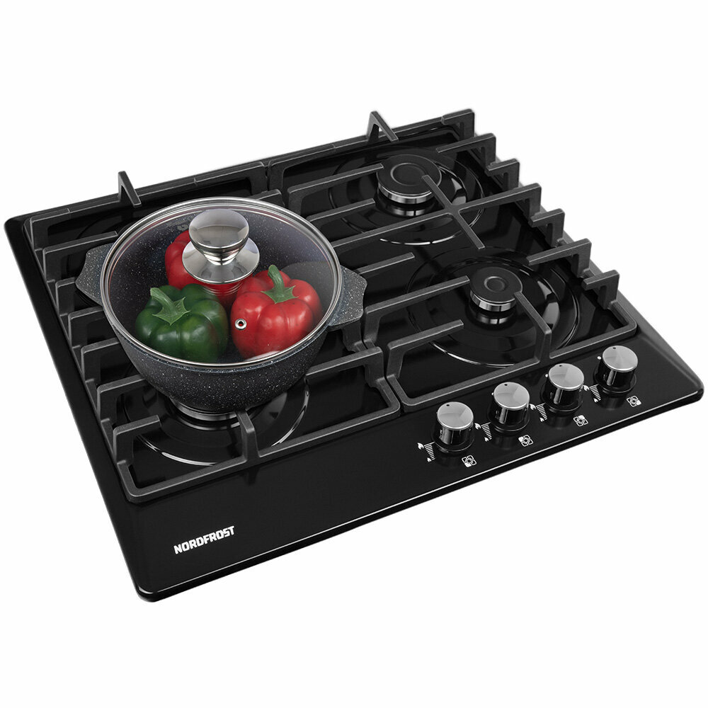 Газовая варочная поверхность NORDFROST HS 6043 B, черная эмаль, чугун решетки, газ-контроль