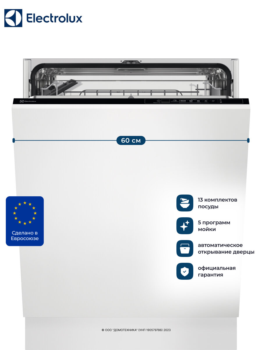 Встраиваемая посудомоечная машина Electrolux полногабаритная, без фасада, электронное управление со световыми индикаторами, 13 комплектов, 5 программ