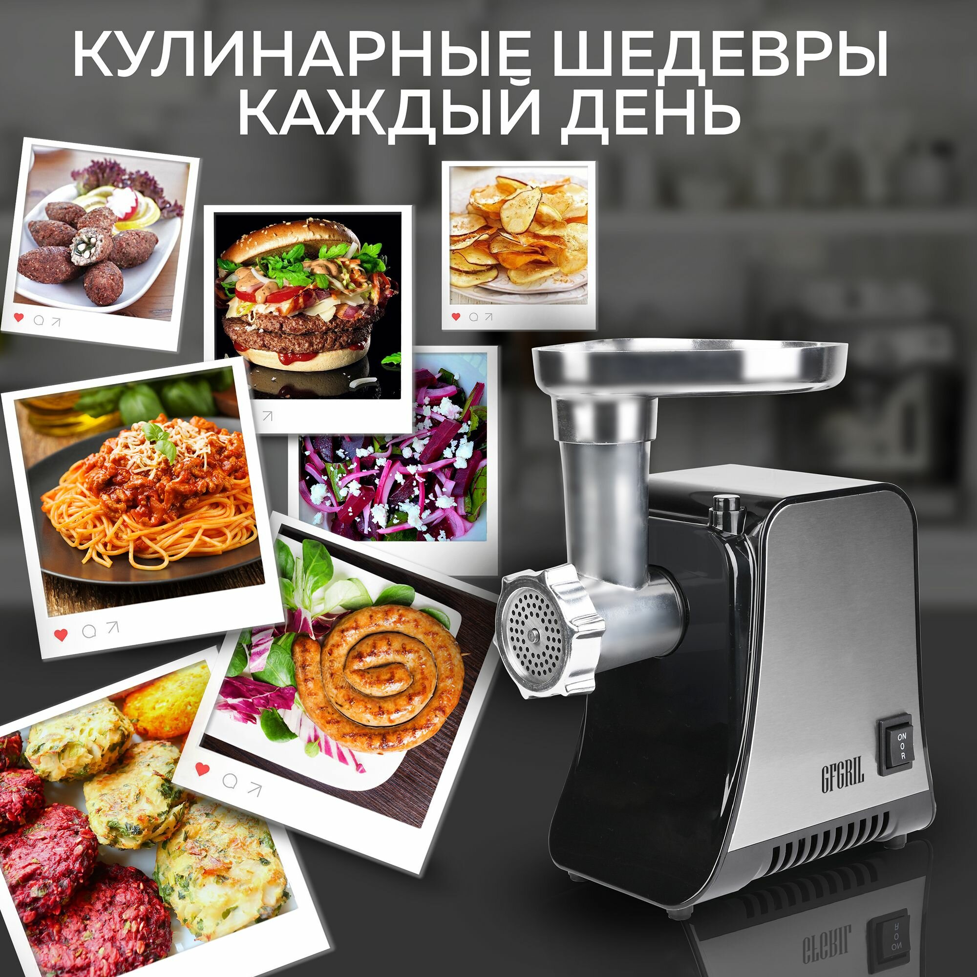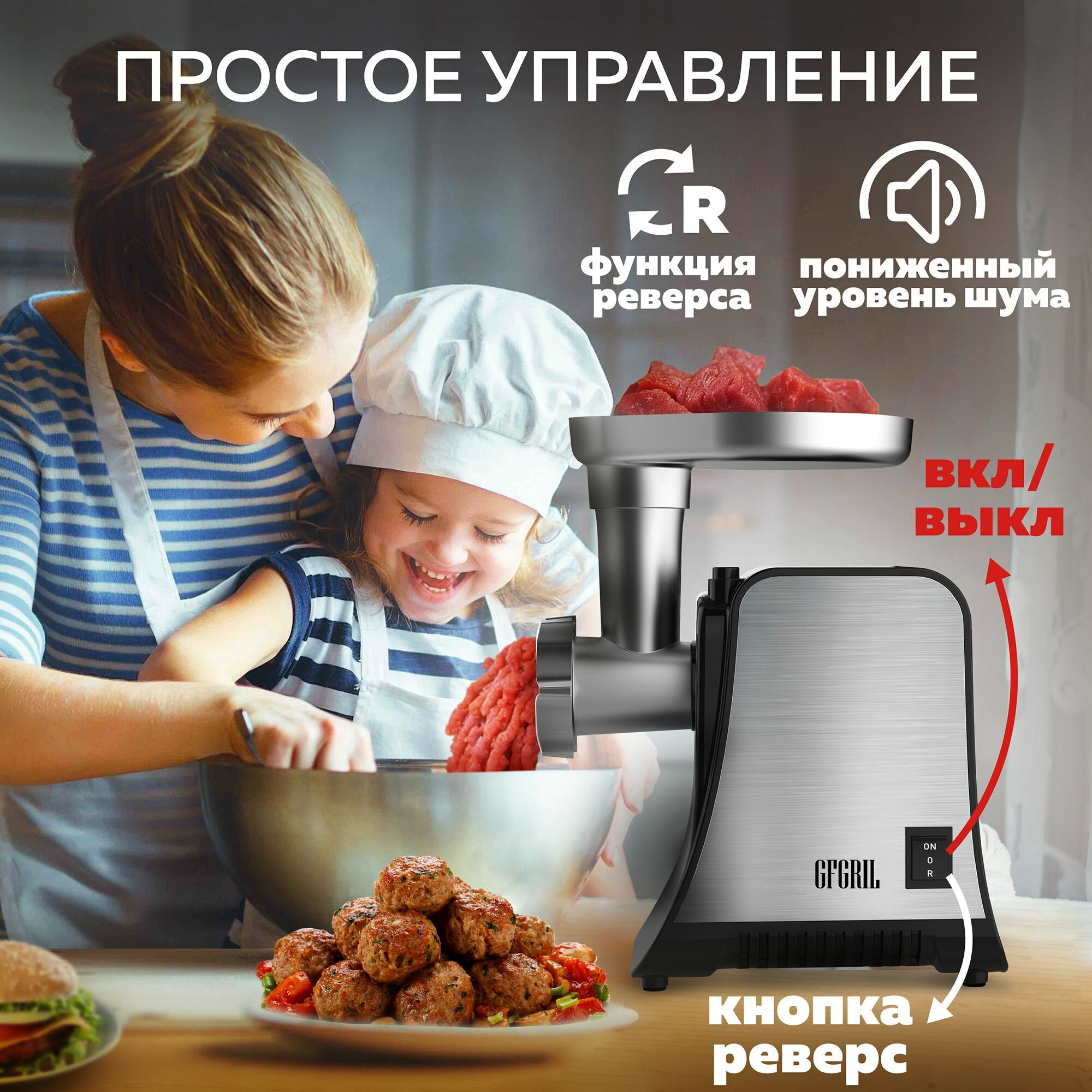 Купить Мясорубка электрическая 2 в 1 GFGRIL GF-MG20 мясорубка, овощерезка, пресс для бургеров